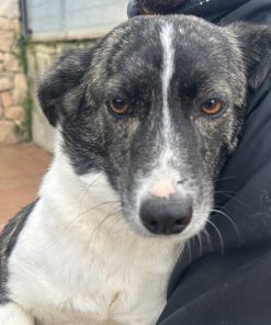 Mit etwa 42 cm Schulterhöhe ist sie eher zart gebaut. Aufgrund ihrer gestromten Fellzeichnung vermuten wir, dass möglicherweise ein Fonnese in ihr stecken könnte – sicher wissen wir das jedoch nicht. Wie so viele sardische Hunde ist sie vermutlich eine ganz eigene Mischung.