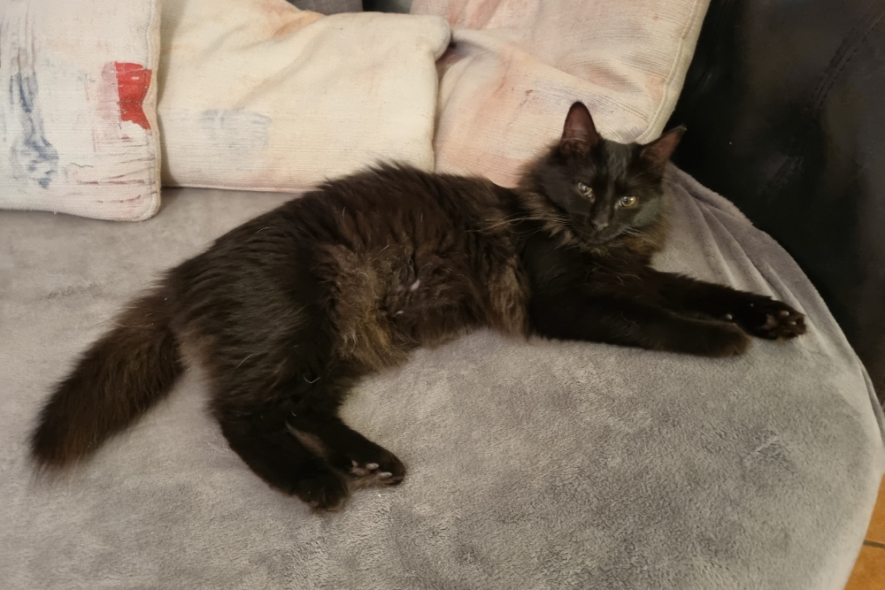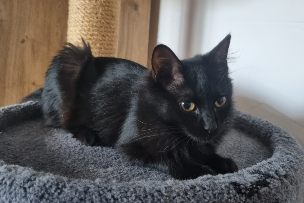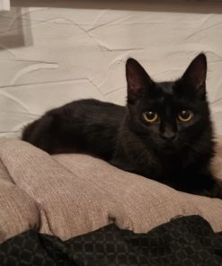 Ihre großen Augen unterstreichen ihren sanften Blick und lassen jedes Herz dahinschmelzen. Mit ihrem halblangen, seidig glänzenden Fell ist Lulu eine echte Schönheit. Ihr angeborener verkürzter Schwanz lässt sie ganz besonders niedlich wirken. Obwohl man schwarzen Katzen nachsagt, auf Fotos nicht so schön auszusehen, ist für uns klar: Lulu ist unglaublich fotogen!