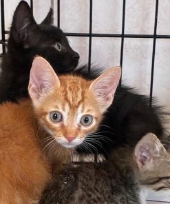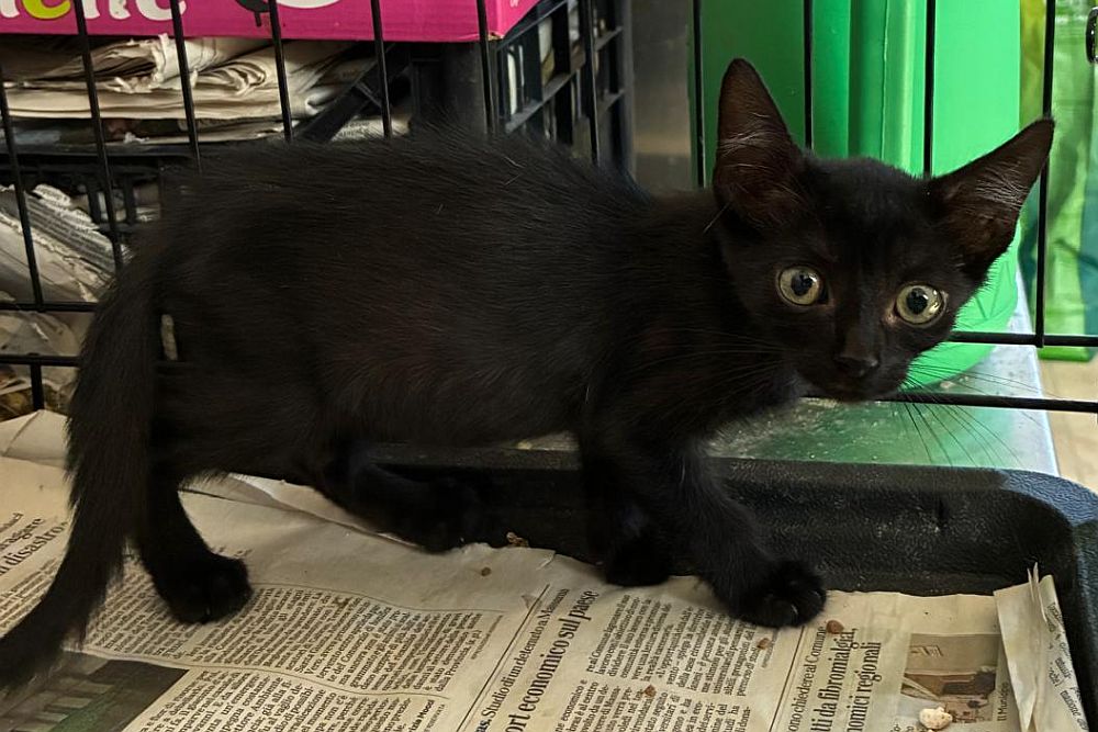 Zu Beginn waren die Kitten schüchtern, was in einer solchen Situation nur allzu verständlich ist. Inzwischen lassen sich Yoshi, Rocco und Daisy schon streicheln. Mattheo ist noch etwas vorsichtiger, wird aber vermutlich mit etwas Geduld, Zuwendung und weniger Stress ein menschenbezogener kleiner Kater werden. Vor Ort haben die Kollegen wenig Zeit für intensive Beschäftigung – die Versorgung beschränkt sich meist aufs Füttern und die Käfigreinigung. Alle Vier sind verträglich mit Katzen. Ob sie auch mit katzenfreundlichen Hunden zurechtkommen, können wir vor Ort nicht sicher testen, es ist aber denkbar, da sie noch jung sind.