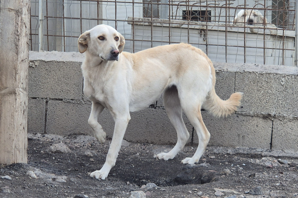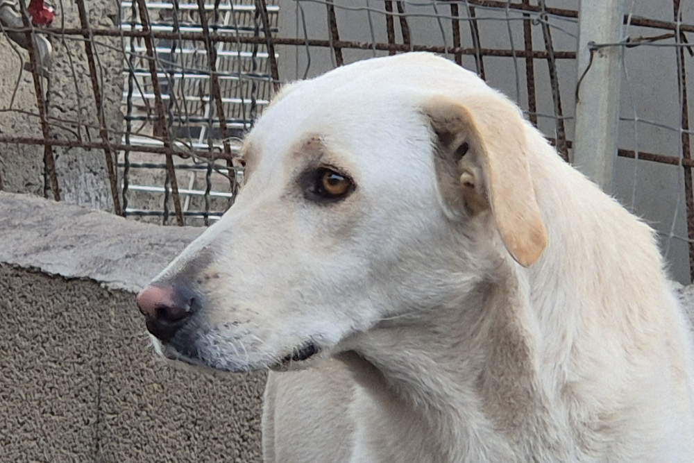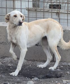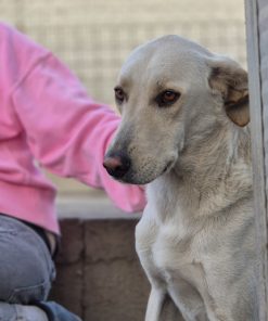 Olias ist eine eher zurückhaltende, scheue Hündin – eine zarte, feine Seele. Vermutlich steckt ein Labrador-Mix in ihr, was man an ihrer sanften Ausstrahlung und ihrem freundlichen Wesen erahnen kann. Sie macht sich lieber „unsichtbar“, beobachtet aus der Distanz und zieht sich zurück, wenn ihr etwas unheimlich wird.