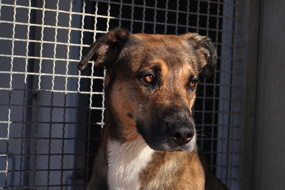 Pongo sitzt allein in seinem Zwinger und darf nur einmal täglich für ein paar Minuten nach draußen. Für einen aktiven, menschenbezogenen Hund ist das eine enorme Belastung. Die Geräuschkulisse, der Stress, der Mangel an Bewegung – all das zehrt sichtbar an ihm. Seine kurzen Ausflüge sind für ihn wie kleine Atempausen im grauen Alltag.