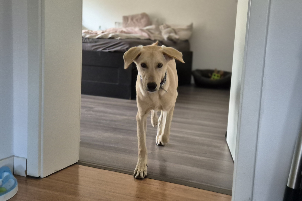 Lino ist ein junger Hund mit einer bemerkenswert sanften und überlegten Art. Als er ankam, versteckte er sich still in seinem Körbchen – alles war fremd und überwältigend. Doch bereits nach wenigen Tagen begann er, vorsichtig die Welt um sich herum zu erkunden. Jeder kleine Fortschritt zeigt, wie viel Mut in ihm steckt; er beobachtet, denkt nach und lernt schnell.