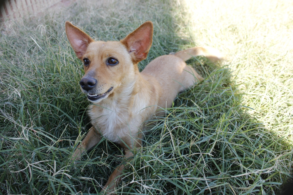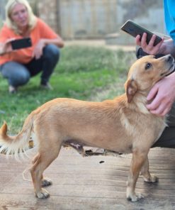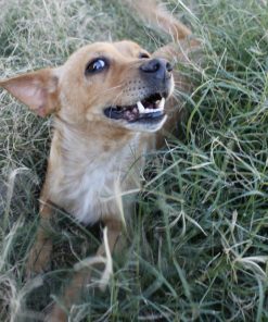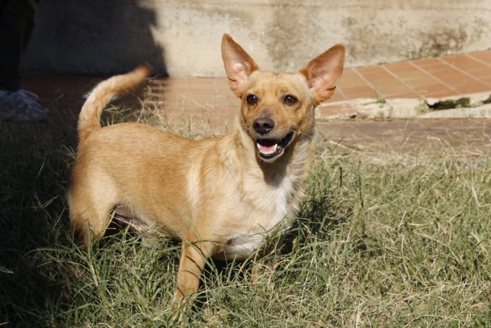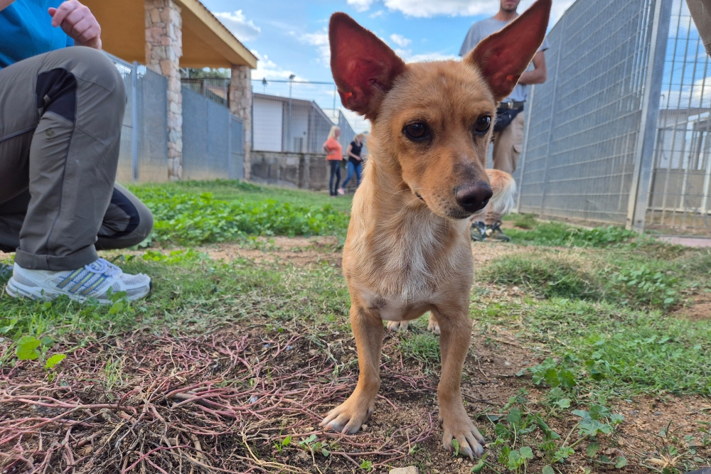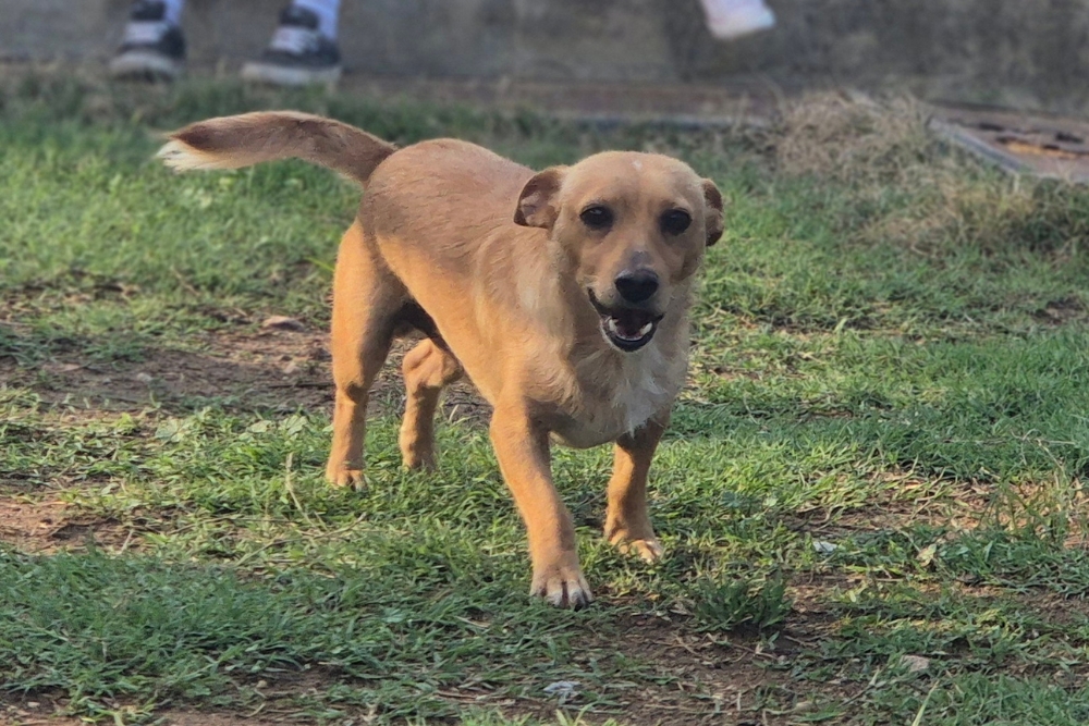 Melanio ist klein, beige-braun, trägt seine Ohren wie zwei stolze Segel und schaut dich mit großen, dunkelbraunen Kulleraugen an, als wollte er sagen: „Na, wo bleibt meine Streicheleinheit?“ Er liebt Menschen – wirklich alle Menschen – und rennt voller Hoffnung von einer Hand zur nächsten, als wäre jede Berührung das Schönste auf der Welt.