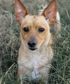 Wer oder was Melanio genau ist, bleibt ein kleines Rätsel. Vielleicht Pinscher, vielleicht Chihuahua, vielleicht Terrier – oder eine streng geheime Sonderedition von allem zusammen. Und wenn man seine riesigen Ohren sieht, könnte man glatt glauben, da steckt auch ein bisschen Fledermaus drin.