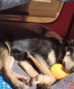 Er ist stubenrein, fährt im Auto ohne Probleme in einer Box mit und kann mit der vorhandenen Hündin bereits ca.1,5 Std. alleine bleiben.