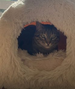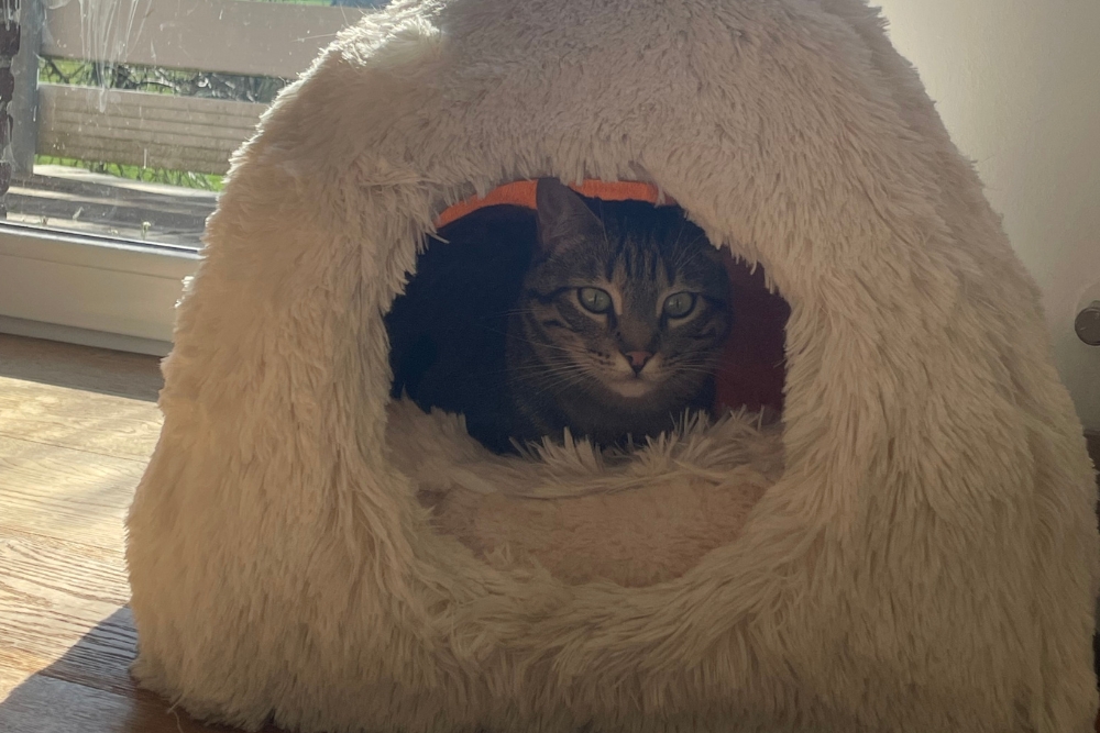 Aktuell lebe ich auf der Katzenstation von DogsFit4Future in Salzkotten. Die Katzenstation besteht aus einer großen und katzengerecht eingerichteten Wohnung, die wir Katzen gemeinsam mit unserem Pflegefrauchen bewohnen. Neben mir leben hier aktuell drei weitere etwa einjährige Katzen, die auf der Suche nach ihrem Zuhause sind.