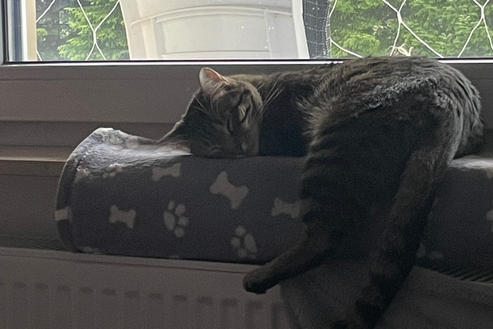 Fremden Menschen und lauten Geräuschen gegenüber bin ich seit einem Erlebnis, bei dem ein Mann mit einem laut piependen Gerät längere Zeit durch die Wohnung lief, etwas ängstlich geworden. Wenn es laut wird oder es klingelt, ziehe ich mich daher lieber zurück und verstecke mich. Sobald ich jedoch merke, dass ich die Menschen kenne und die anderen Katzen entspannt bleiben, fasse ich wieder Mut und komme vorsichtig aus meinem Versteck.