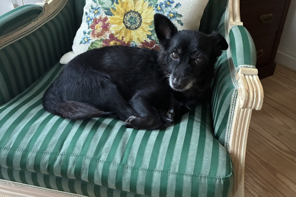 Abends setzte ich mich vorsichtig zu ihr aufs Sofa. Sie lächelte so lieb, dass ich mich an sie kuschelte und sie streichelte mich ganz sanft. In dieser Nacht durfte ich in ihrem Bett schlafen. Sie sagte „Hopp“ und ich wusste sofort: Das ist mein Platz.