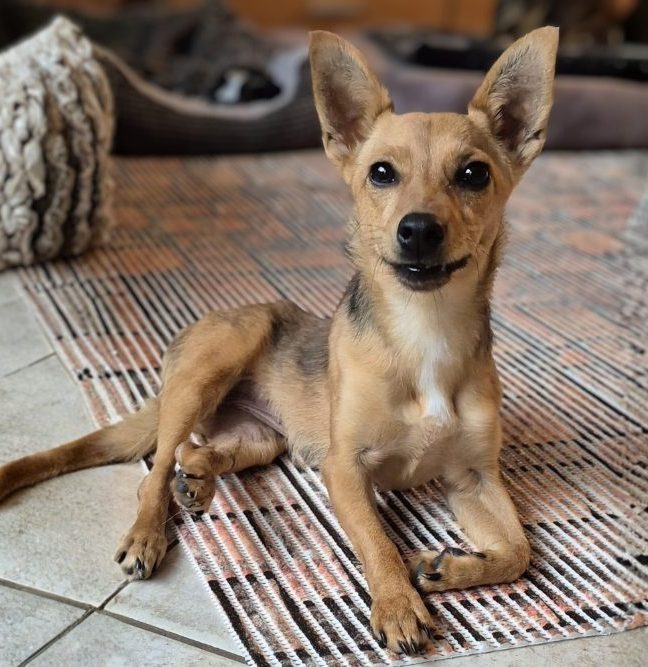 Als die winzige Hündin mit der deformierten Wirbelsäule einst im Canile Comunale Tortolì ankam, schien ihr Weg alles andere als leicht. Doch wer Skiena begegnete, spürte sofort: Dieses Hundemädchen trägt ein großes Licht in sich. Trotz ihrer Einschränkungen tapste sie freundlich auf jeden zu, neugierig, lebensfroh – als würde sie selbst die schwerste Last mit einem Lächeln tragen.