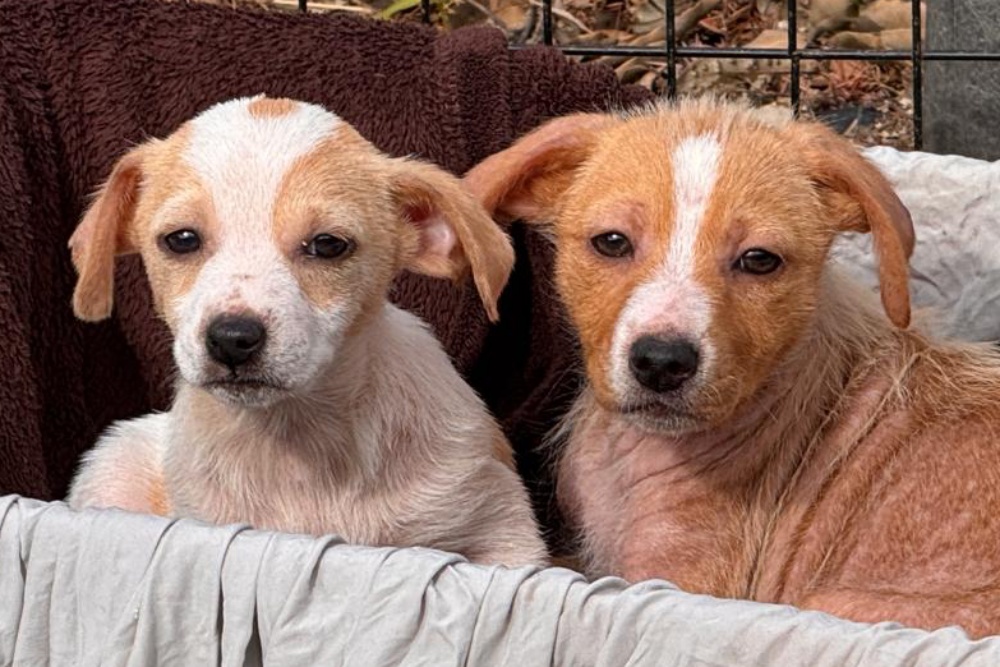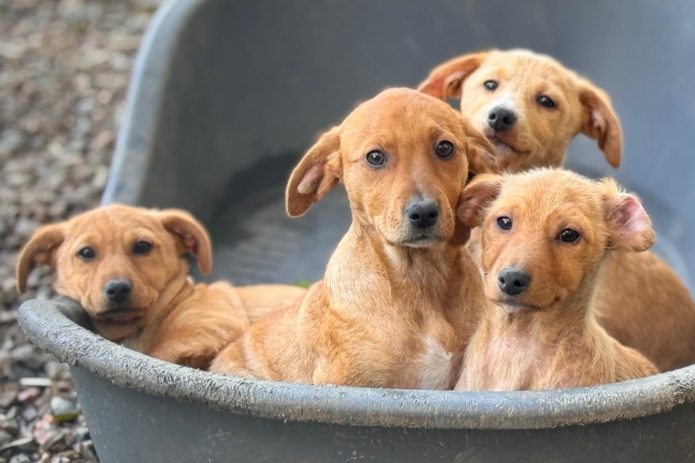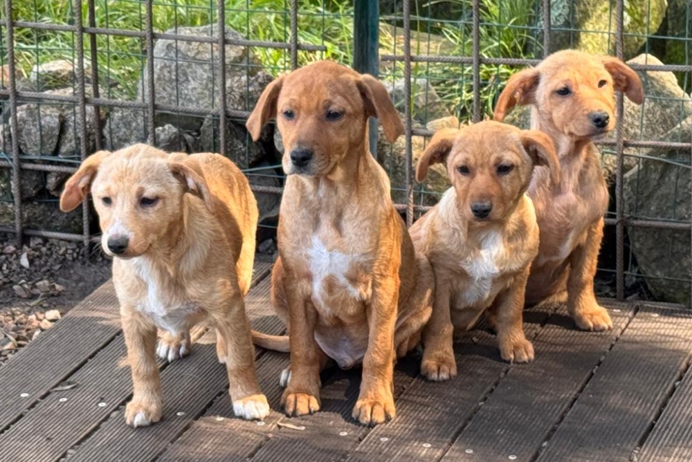 Diese sechs Welpen wurden an einem alten Steinbruch entdeckt – abgemagert, hungrig und voller Flöhe. Ihre Haut war gezeichnet, mit kahlen Stellen übersät, ihre kleinen Bäuchlein vom Wurmbefall aufgequollen. Zunächst wurden sie von einer Anwohnerin gesehen, angefüttert und schließlich zum Glück gesichert.