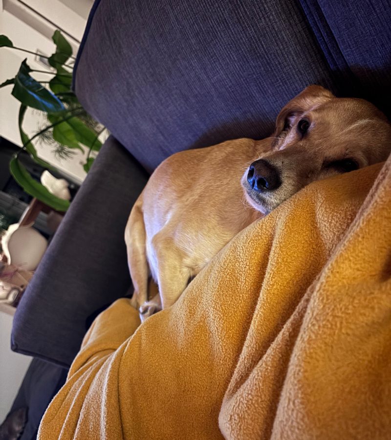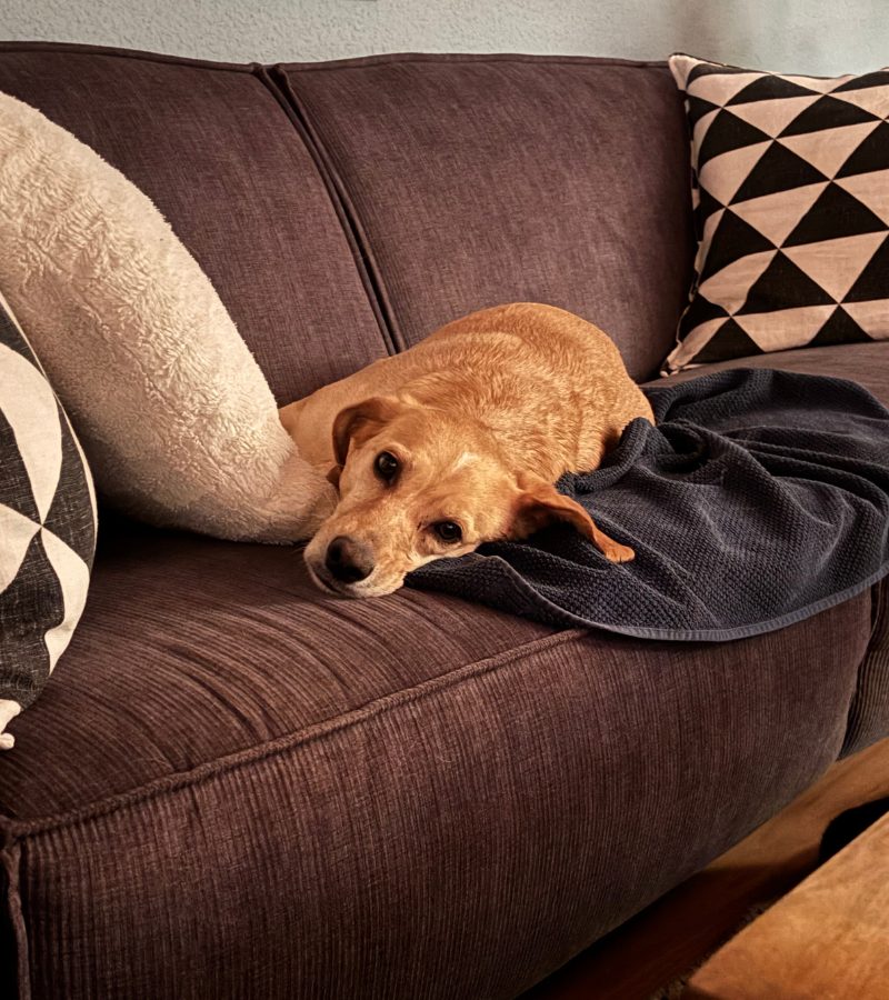 Dort war zunächst alles neu und aufregend: meine beiden Katzen, neue Abläufe wie Gassigehen, Fressen und Schlafen. Doch erstaunlich schnell fand Lotta ihren Platz – zuerst auf ihrem Hundekissen, dann auf dem Sofa und kurze Zeit später sogar im Bett.