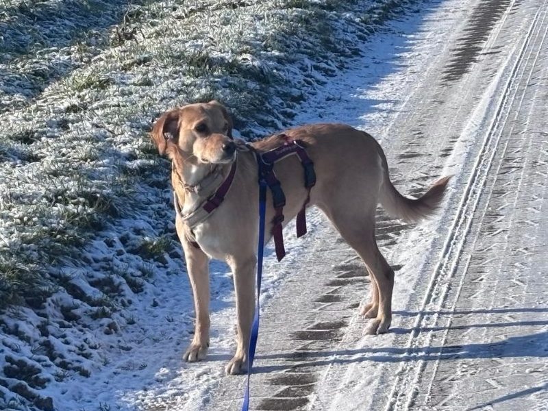 Die ersten Spaziergänge absolvierte ich bewusst allein mit ihr, fernab von großen Reizen: Feldwege, Ruhe, Zeit. Später folgten Spaziergänge mit meiner weltallerbesten Freundin Beate und ihren Hunden – mal zu dritt, mal zu viert. Auch das funktionierte überraschend gut. Lotta wurde mit ihrer Schüchternheit akzeptiert und begann sichtbar, sich wohlzufühlen. Unser Rudel wuchs weiter, und selbst der erste große Weihnachtsspaziergang mit über 30 Hunden war ein voller Erfolg.