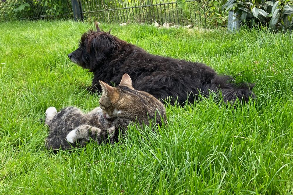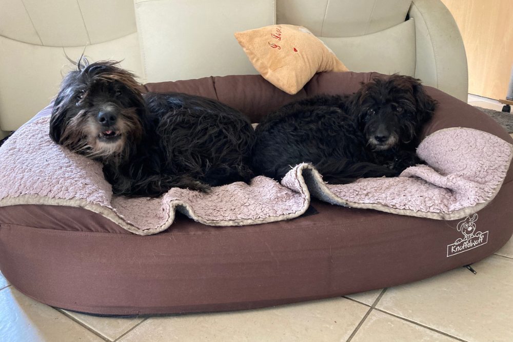 Dann erkrankte das gütige Tier an Demenz. Er drehte sich bei Spaziergängen unvermittelt um und wechselte die Richtung. Dies veranlasste uns, wieder eine Hündin aus dem Tierschutz aufzunehmen. Mit Tasha bekam Sancho wieder eine Freundin, die ihm Orientierung gab. Er lebte noch einmal für zwölf Monate auf. Doch dann kam der Moment der Entscheidung, ihn nicht leiden zu lassen.