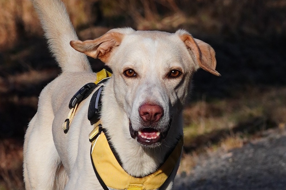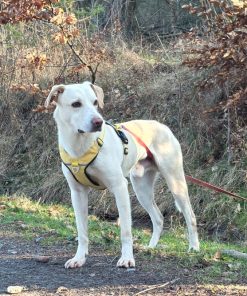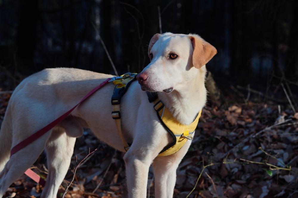 Alex ist ein wunderschöner, schlanker junger Rüde, der mit großer Hingabe läuft und seine neue Welt erkundet. Dabei ist er am allerliebsten im Wald unterwegs: Hier fühlt er sich sicher und probiert sich voller Lust und Leidenschaft an seiner neuen Mobilität aus. Dabei zeigt er schon jetzt, dass ein athletischer Abenteurer in ihm steckt. Er folgt konzentriert Spuren und untersucht geschäftig, was ihm neu und spannend erscheint. Dabei läuft er schon sehr gut an einer langen Schleppleine und hört super artig auf Rückruf. Seinem Verhalten nach hat Alex Jagdtrieb, der perspektivisch kontrolliert werden sollte – Stand jetzt ist er aber sehr gut abrufbar und kommt sofort angeflitzt, wenn man ihn auf den Weg zurückruft.