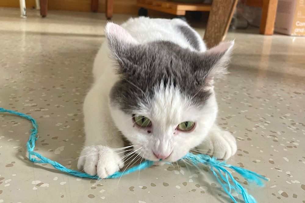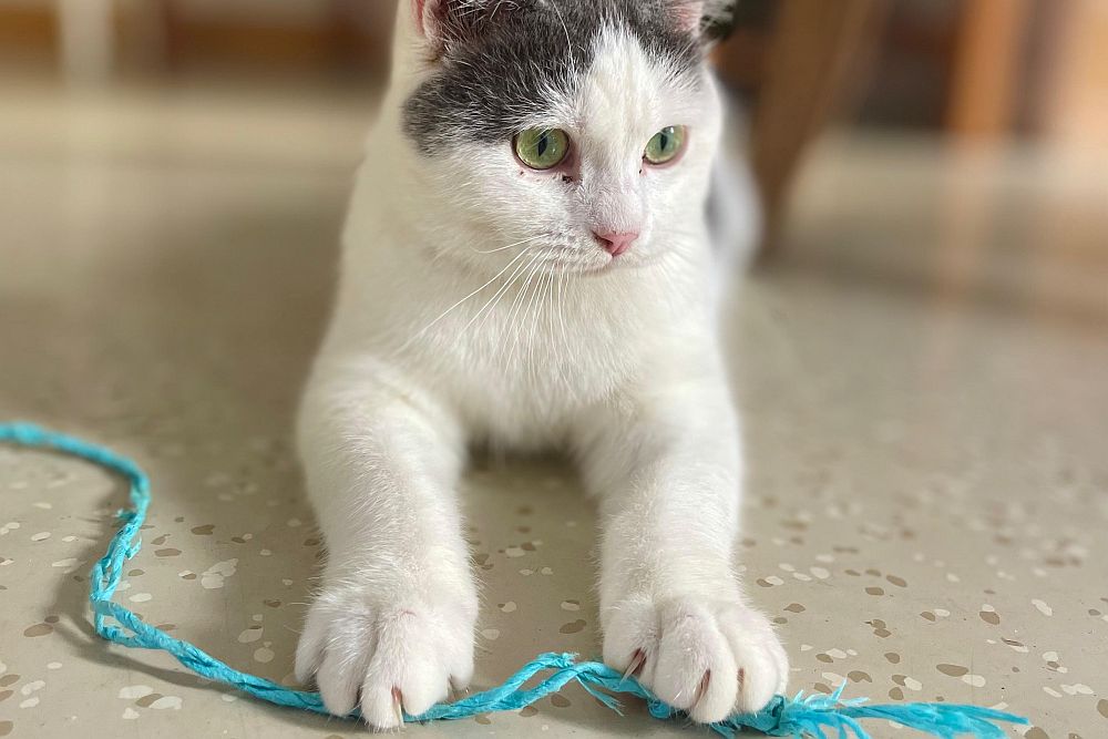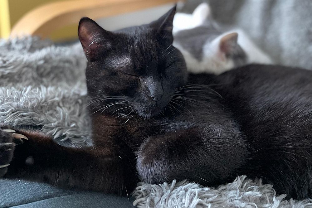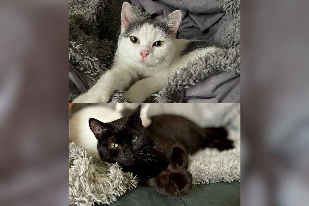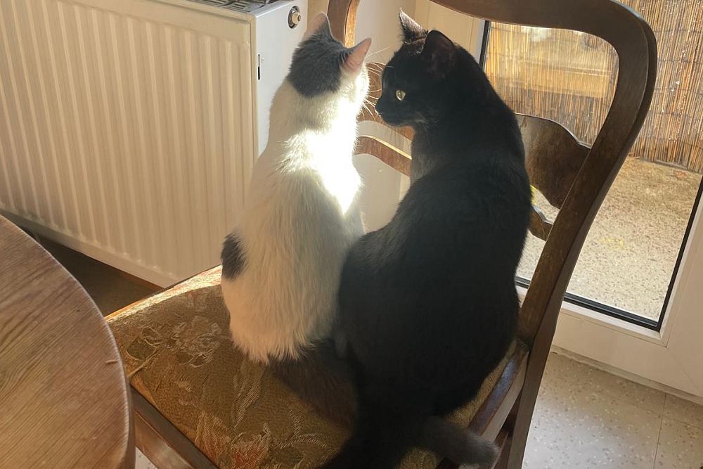Auf unserer Pflegestelle haben wir uns blitzschnell eingelebt und genießen unser neues Leben in vollen Zügen. Ich bin die Verspielte von uns beiden, immer neugierig und für jedes Abenteuer zu haben, während Pablo lieber ausgiebig schmust. Wenn Gäste kommen, freuen wir uns sehr – neue Spielkameraden!
