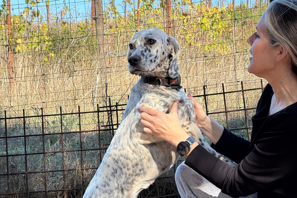 Heute lebt Betty auf dem Weinberg und entdeckt dort gerade das Leben. Zum ersten Mal darf sie rennen, schnuppern, spielen und einfach Hund sein. Sie ist Teil einer kleinen Hundefamilie, sammelt täglich neue Eindrücke und lernt, wie sich Freiheit, Nähe und Alltag außerhalb eines Zwingers anfühlen. Alles ist neu, alles ist spannend und Betty genießt jeden einzelnen Moment mit leuchtenden Augen.
