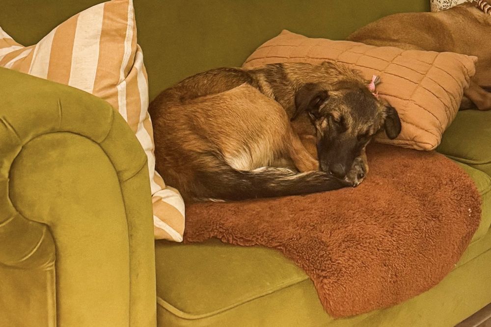 Seit dem Einzug zeigt sich Carolina als anpassungsfähige Hündin, die zunehmend im häuslichen Alltag ankommt. Sie schläft nachts zuverlässig durch, ist weitestgehend stubenrein und nutzt den Garten sehr gerne. Besonders hilfreich für sie ist die ruhige, strukturierte Umgebung, in der sie Schritt für Schritt lernen darf, zur Ruhe zu kommen.