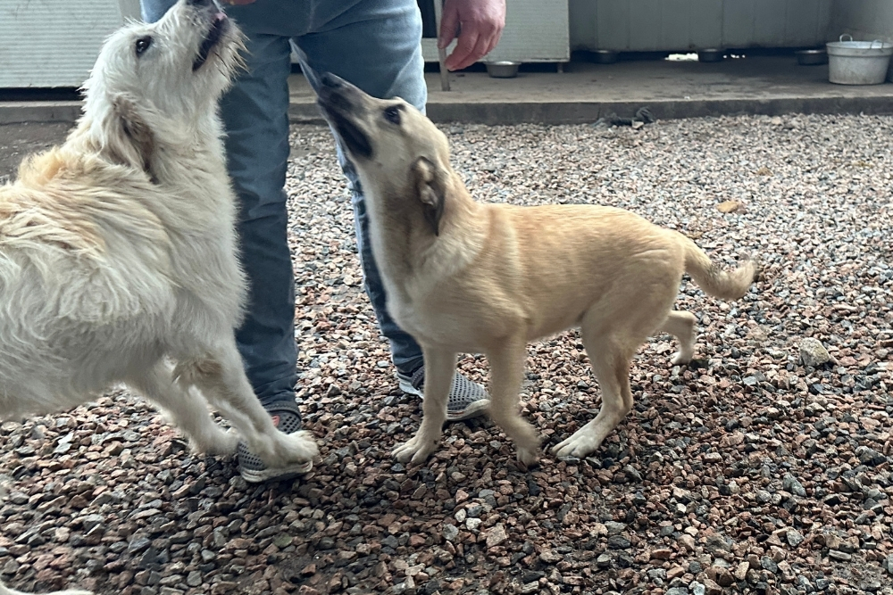 Seit September 2025 leben Cherie und Clizia in unserem Kooperationstierheim, der L.I.D.A. in Olbia. Anfangs waren sie tagsüber in einem winzigen Welpenfreilauf untergebracht – kaum größer als eine Decke, laut und unruhig. Nachts kamen sie in eine kleine Quarantänebox, in der es keinen Platz zum Bewegen gab.
