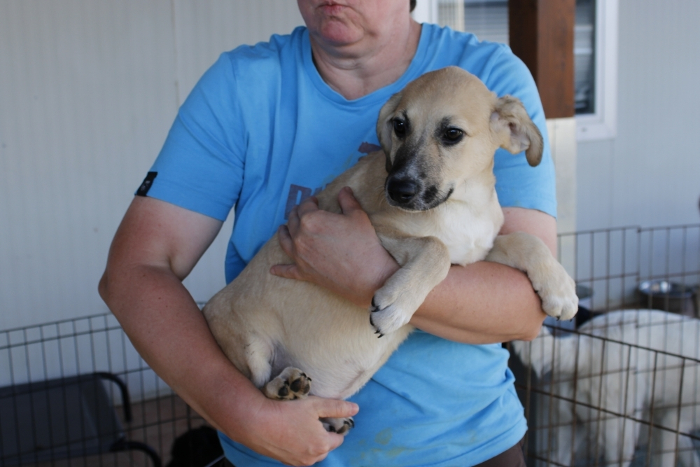 Sie ist welpentypisch verspielt, verträglich mit anderen Hunden und dem Menschen gegenüber zugewandt.
