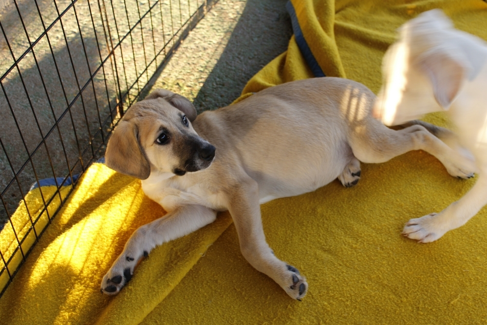 Seit September 2025 leben Cherie und Clizia in unserem Kooperationstierheim, der L.I.D.A. in Olbia. Tagsüber sind sie in einem winzigen Welpenfreilauf untergebracht – kaum größer als eine Decke, laut und unruhig. Nachts kommen sie in eine kleine Quarantänebox, in der es keinen Platz zum Bewegen gibt.