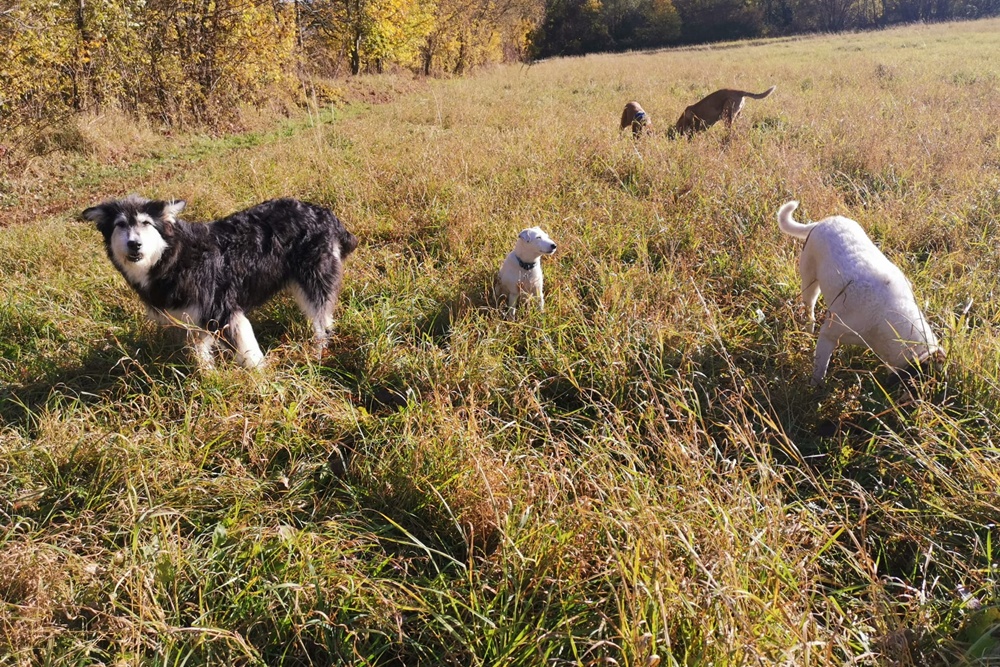 Ciccio hat definitiv Jagdtrieb, wenn er auch nicht allen Tieren hinterherjagt, sondern durchaus Unterschiede macht. Katzen und Eichhörnchen werden vehement verscheucht, Wildtiere werden toleriert.