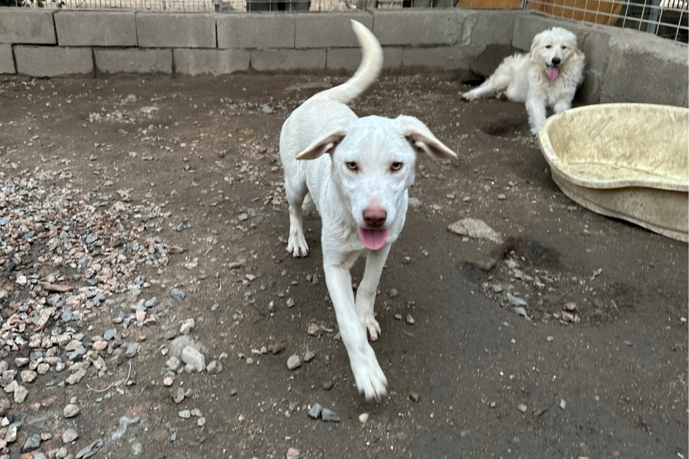 Seit September 2025 leben Clizia und Cherie in unserem Kooperationstierheim, der L.I.D.A. in Olbia. Anfangs waren sie tagsüber in einem winzigen Welpenfreilauf untergebracht – kaum größer als eine Decke, laut und unruhig. Nachts kamen sie in eine kleine Quarantänebox, in der es keinen Platz zum Bewegen gab.
