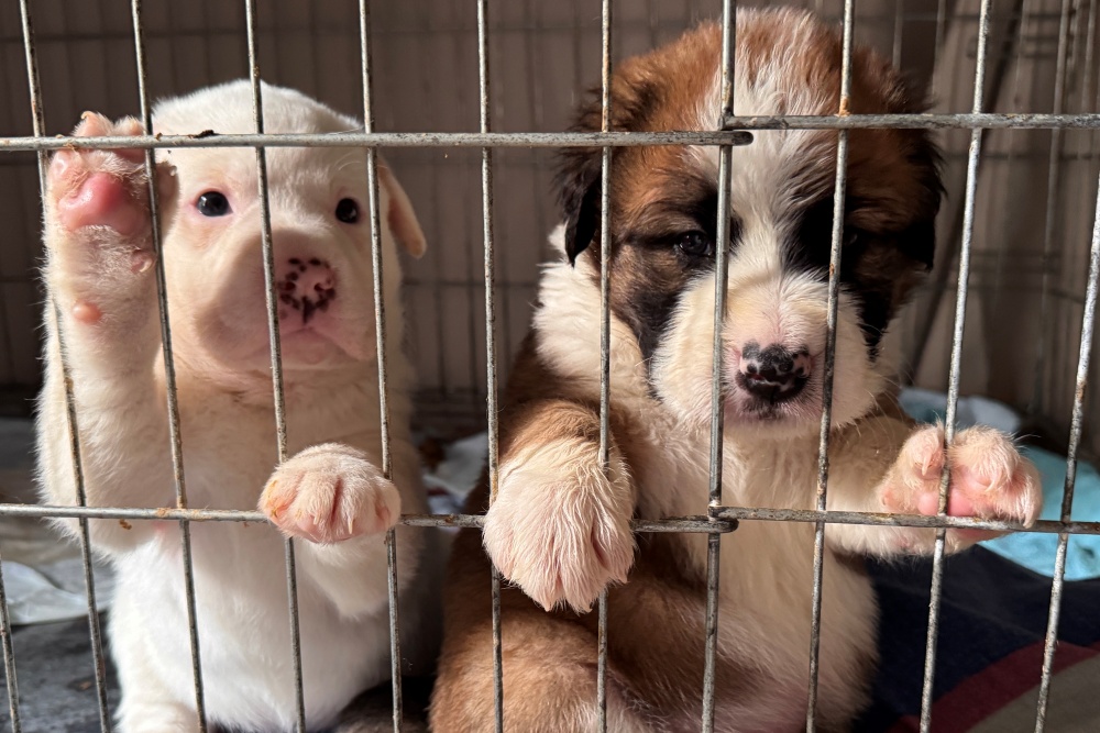 Nicht einmal zehn Tage später – wieder nach einem heftigen Regentag – standen die nächsten beiden Welpen am selben Ort. Gleiche Stelle, gleiche Vorgehensweise. Uns war sofort klar: Das müssen Geschwister sein.