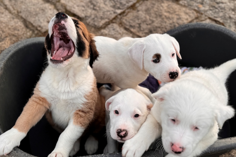 Aktuell lebt Dorian mit seinem Bruder Darius und seiner Schwester Dani auf unserer Welpenstation. Die weitere Schwester wird bald ausreisen. Sie hat bereits ihr Für-immer-Zuhause gefunden. Alle vier wachsen aktuell in einem stabilen Rudel mit engem Menschenkontakt auf und entdecken täglich neue Abenteuer.