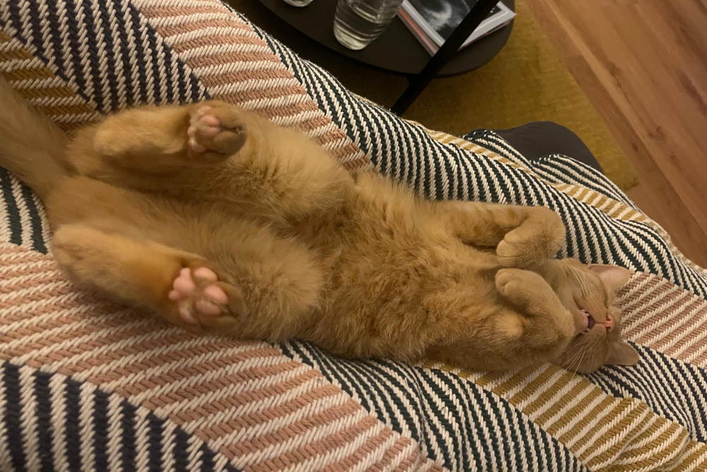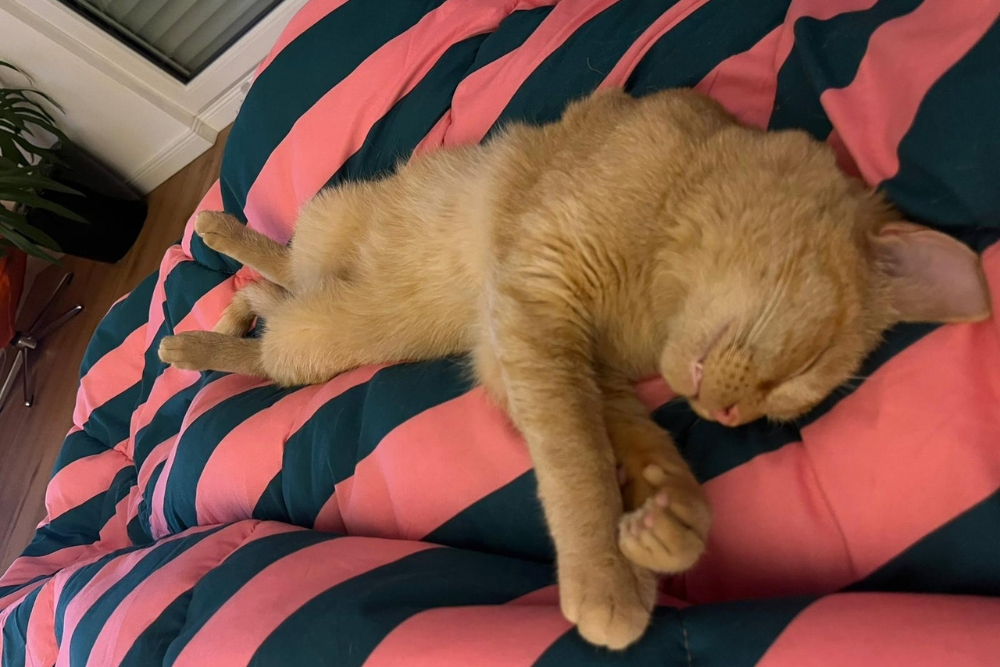 Daher war es für sie besonders schlimm, im Tierheim in einem kleinen Käfig eingesperrt gewesen zu sein. Glücklicherweise durfte sie im Oktober auf eine Pflegestelle nach Köln ziehen. Dort schlief sie gleich in der ersten Nacht mit im Bett. Wie es sich für eine kleine Sardin gehört, liebt sie die Wärme, weshalb sie sich am liebsten unter die Decke oder in den Arm ihrer Menschen kuschelt. Im Gegenzug für ihre heißgeliebten Streicheleinheiten übernimmt sie im Haushalt viele verschiedene Jobs. Sie ist Türsteherin, Yoga-Lehrerin, Köchin und Entertainerin. Wenn es klingelt, ist Eva die erste an der Tür. Begeistert begrüßt sie jeden Besuch und freut sich über die Aufmerksamkeit. Anschließend präsentiert sie die verrücktesten Yogaübungen und streckt dabei alle vier Pfötchen von sich. Durch ihre Geschicklichkeit kann Eva Schränke öffnen und stibitzt dabei auch gerne mal etwas zu essen. Trotzdem geht sie bei Intelligenzspielzeugen eher mit Gewalt als mit Köpfchen vor. Insgesamt ist sie sehr verspielt und liebt vor allem Jagdspielzeuge. Am liebsten spielt sie mit einem Ball, den sie durch die ganze Wohnung schießen kann. All diese Abenteuer muss sie natürlich ihren Menschen erzählen, denn Eva liebt es, zu schnattern – am liebsten beim Essen, aber auch den restlichen Tag, denn Eva ist IMMER mit dabei. Erst am Abend kehrt wieder Ruhe ein. Nach so einem arbeitsreichen Tag will die rote Schönheit einfach nur schmusen und bei ihren Menschen schlafen.