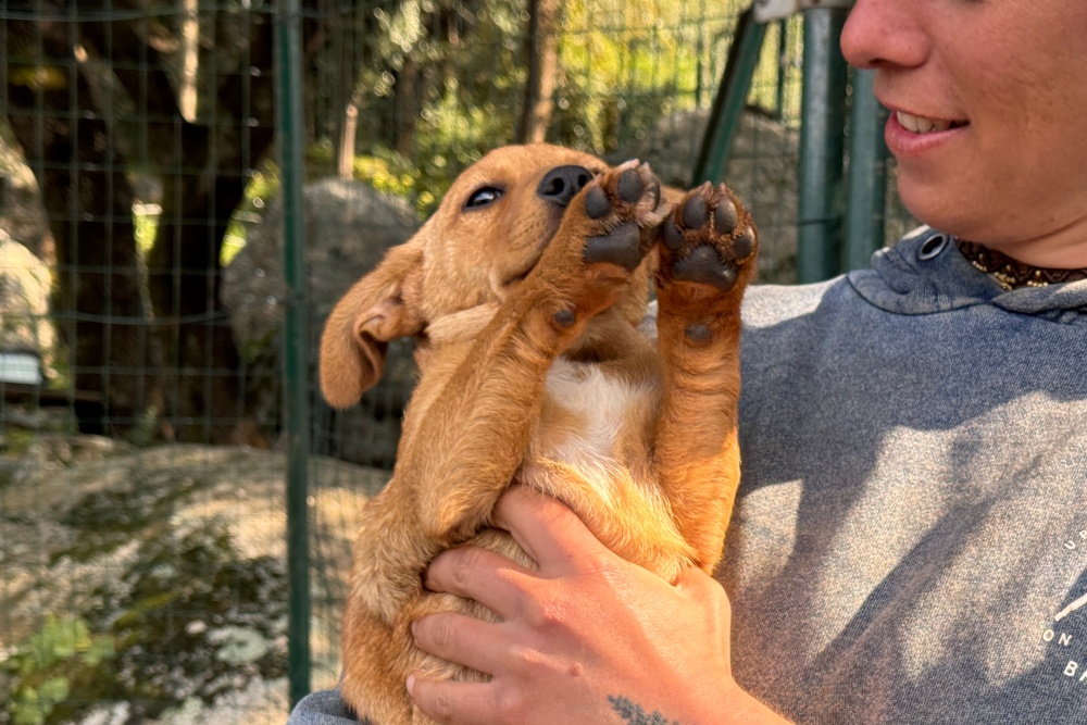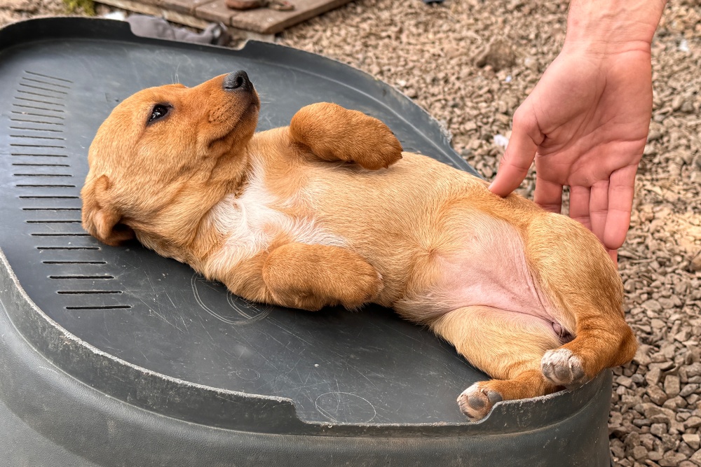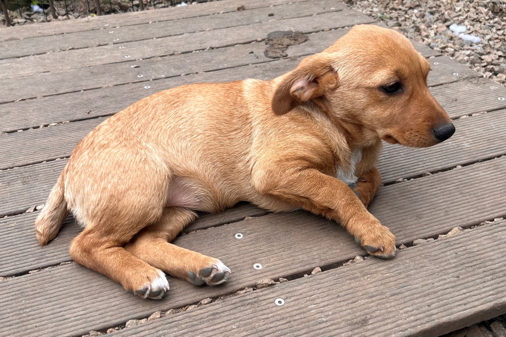 Sechs Welpen wurden an einem alten Steinbruch entdeckt – abgemagert, hungrig und übersät mit Flöhen. Ihre Haut war von kahlen Stellen gezeichnet, die kleinen Bäuchlein vom Wurmbefall aufgebläht. Eine Anwohnerin bemerkte sie, fütterte sie an und konnte sie schließlich sichern. Was sie in ihrem jungen Leben bereits erlebt haben, bleibt ungewiss – umso größer ist die Dankbarkeit, dass sie nun in Sicherheit sind und wir uns um sie kümmern dürfen.
