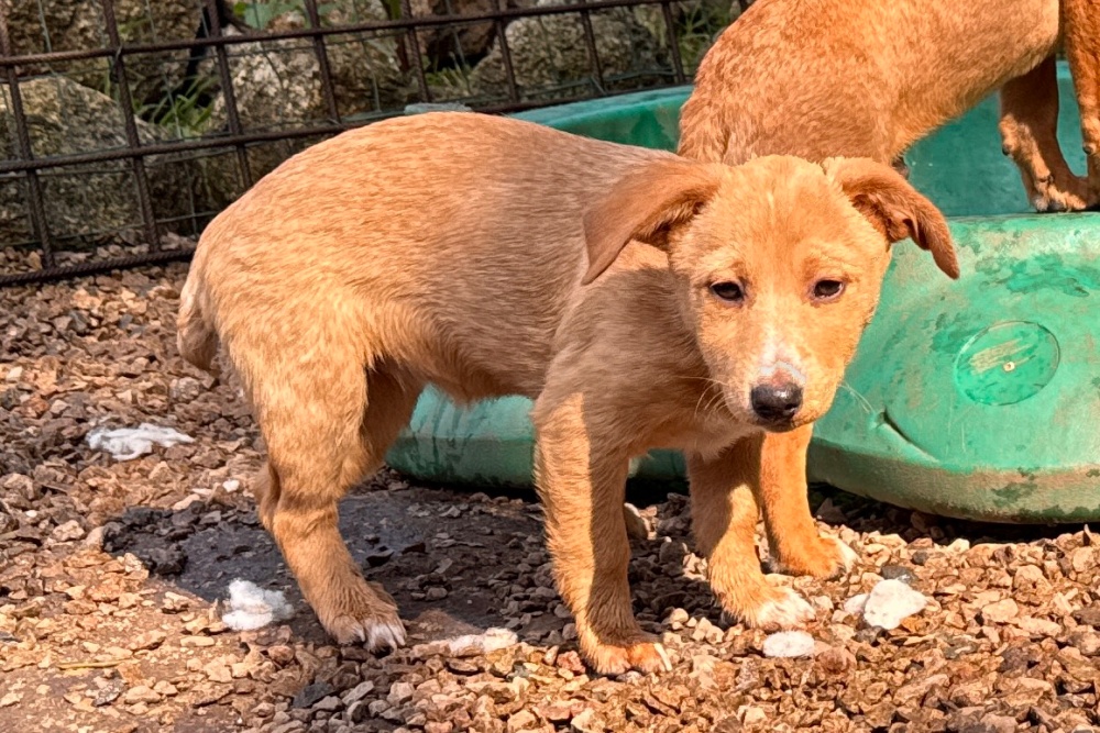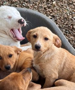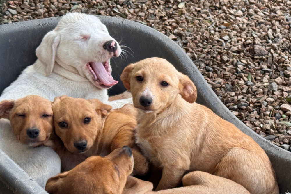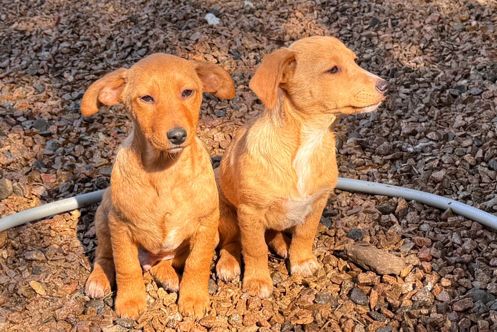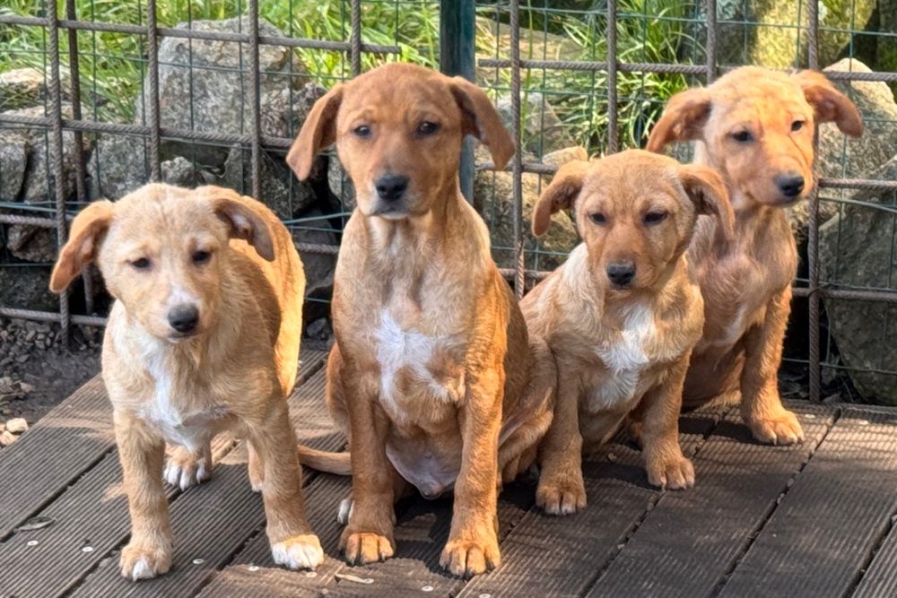 Sechs Welpen wurden an einem alten Steinbruch entdeckt – abgemagert, hungrig und übersät mit Flöhen. Ihre Haut war von kahlen Stellen gezeichnet, die kleinen Bäuchlein vom Wurmbefall aufgebläht. Eine Anwohnerin bemerkte sie, fütterte sie an und konnte sie schließlich sichern. Was sie in ihrem jungen Leben bereits erlebt haben, bleibt ungewiss – umso größer ist die Dankbarkeit, dass sie nun in Sicherheit sind und wir uns um sie kümmern dürfen.