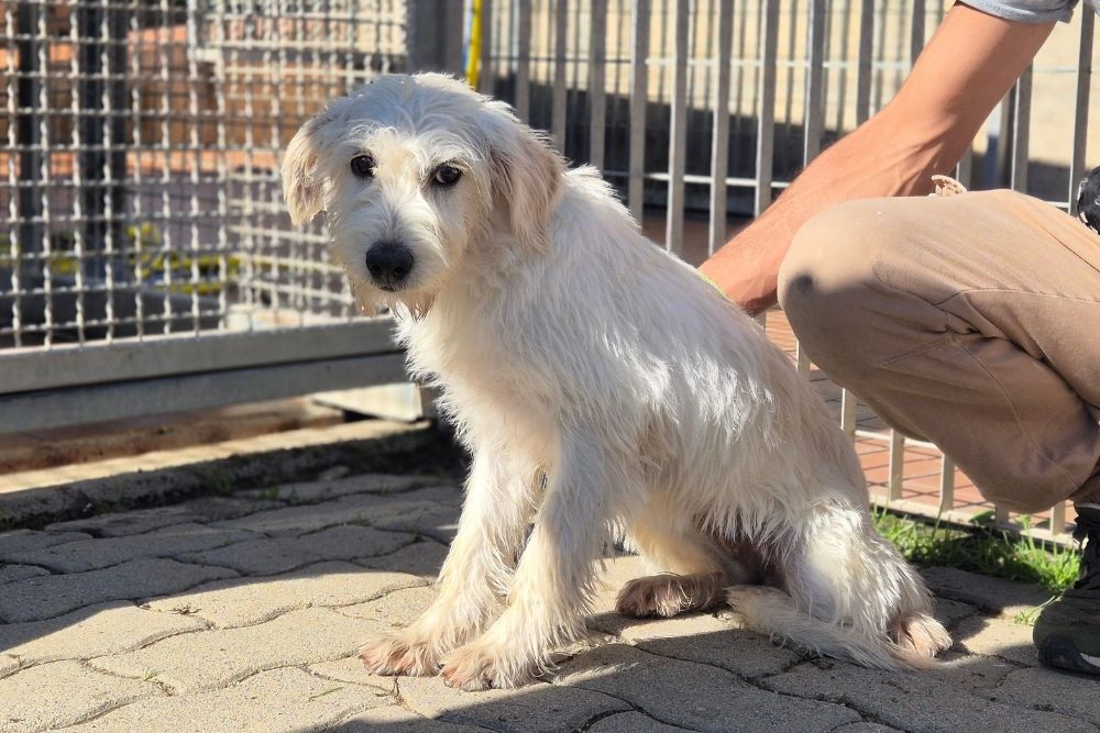 Ich bin ein junges Hundemädchen, eine wunderschöne Mischung, vermutlich aus Terrier und Spinone. Mein feines flusiges weißes Fell, das an eine zarte Schneeflocke erinnert, verleiht mir ein besonders niedliches und einzigartiges Erscheinungsbild. Momentan bin ich noch ziemlich schüchtern und sehne mich nach einer ruhigen Umgebung, in der ich mich sicher und geborgen fühlen kann. Der stressige Alltag im Canile ist für mich eine große Herausforderung, doch ich bin neugierig und lernfreudig. Mit ein bisschen Geduld, Liebe und Verständnis werde ich sicher schnell aufblühen und mein wahres Wesen zeigen.