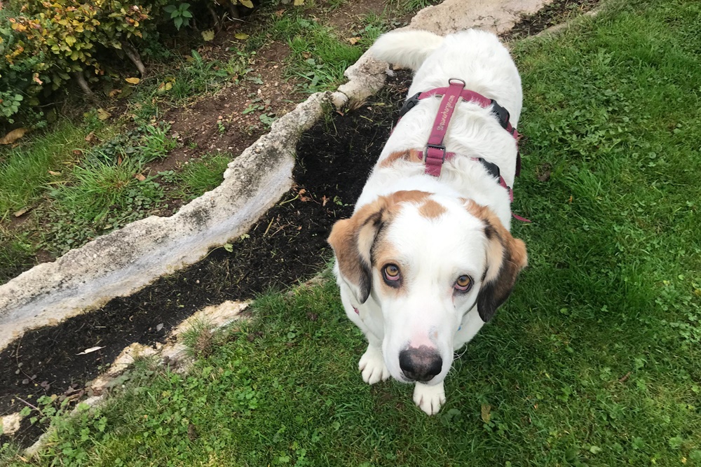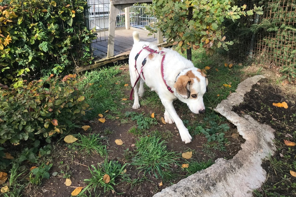 Frank ist ein Maremmano-Schäferhund-Mischling von etwas niedrigerer Schulterhöhe und derzeit noch mit ein paar Kilo zu viel auf den Rippen. Er darf mit seiner Pflegefamilie aber sehr viel Gassi gehen und hat schon ein paar Pfund verloren. In seinem neuen Zuhause sollte daher auf sein Gewicht geachtet werden.