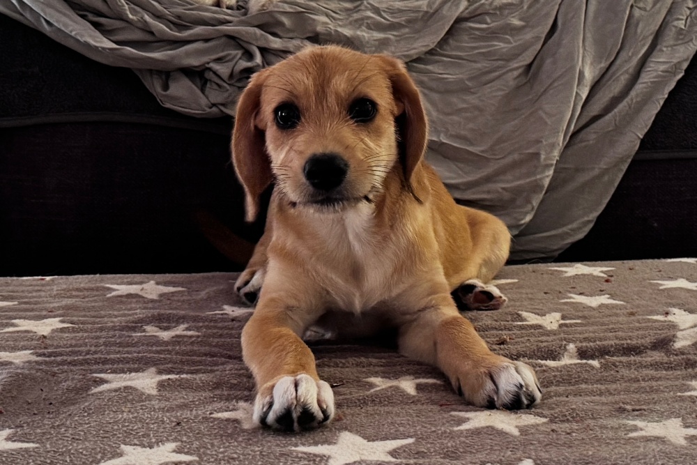 Sie lernt schnell, kennt das Wort „Nein“ schon sehr gut und akzeptiert es – auch wenn ihr manchmal vor lauter Ideen der Kopf sprudelt. Bereits jetzt beherrscht sie einige Grundkommandos wie „Sitz“„Komm“, oder „Warte“ und das für ihr Alter mit erstaunlicher Zuverlässigkeit. Große Hunde findet sie beeindruckend und begegnet ihnen respektvoll, aber nicht ängstlich. Kurze Zeit allein bleiben kann sie schon, dann schläft sie brav an ihrem Platz. Sie liebt es, Neues zu entdecken und da in ihr Jagdhundblut fließt, könnte ihr später Nasenarbeit oder Mantrailing großen Spaß machen.