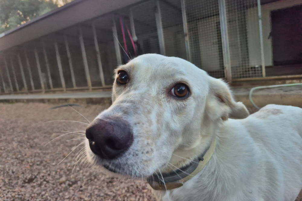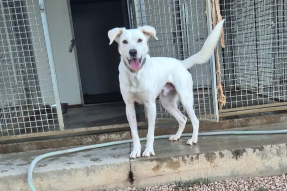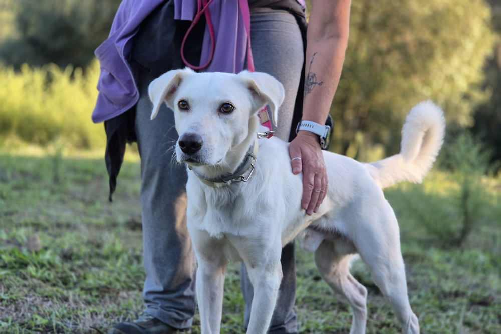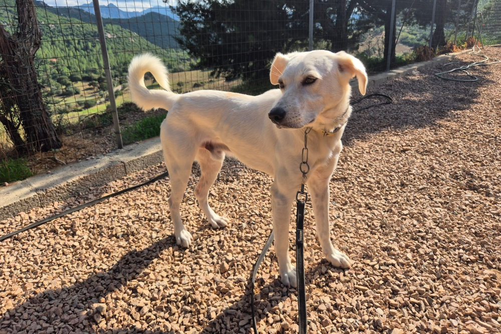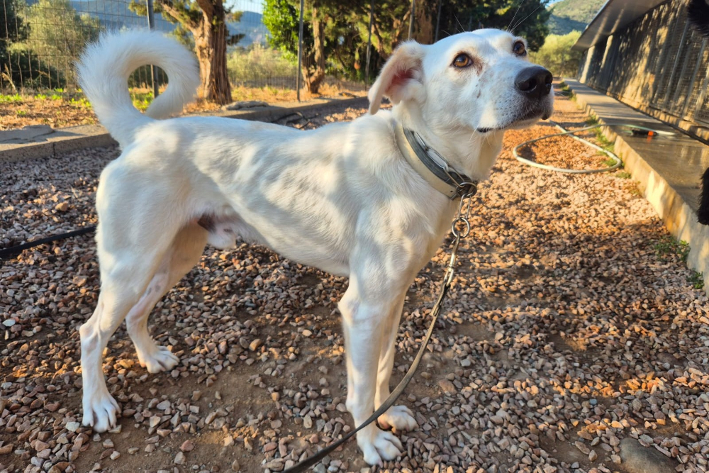 Ich bin ein junger Maremmano-Mischling, etwa 56 cm groß und wiege rund 26 kg. Inzwischen wurde ich kastriert und bin körperlich gut entwickelt. Ich wirke vielleicht schon erwachsen, trage aber noch viel jugendliche Unsicherheit in mir.