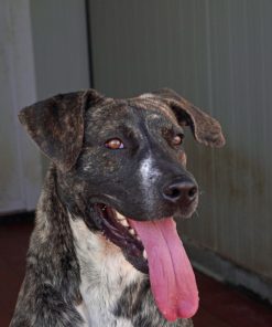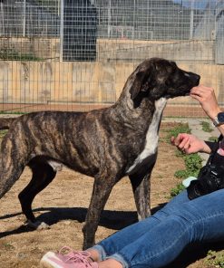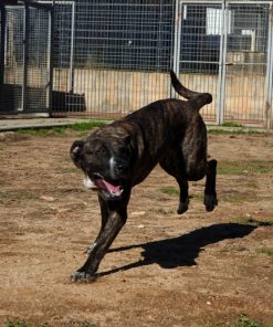 Ich bin zu einem schönen, stattlichen Kerl herangewachsen – einem typischen Dogo Sardo, wie man hier auf Sardinien sagt: kräftig, wachsam und mit einem Herz voller Feuer. Früher war ich ein bisschen schlaksig, aber jetzt passt mein Körper perfekt zu meinen Pfoten. Mein Fell ist immer noch gestromt wie Wellen, meine Knickohren wippen fröhlich, wenn ich laufe, und auf meiner Nase sitzt dieser kleine weiße Klecks, der mich unverwechselbar macht.