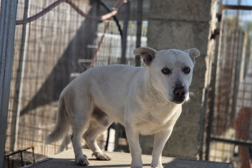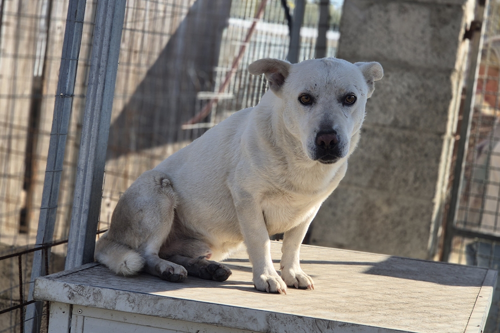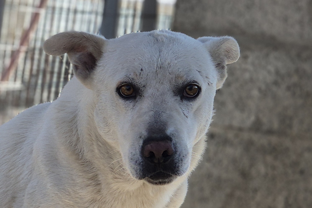 Der einst so neugierige, freche Junghund lebt inzwischen nicht mehr mit seinen Geschwistern im Gehege, sondern musste in einen kleinen, engen Schlauch umziehen. Dort teilt er sich den Platz mit einer Hündin – viel mehr Abwechslung hat sein Alltag nicht mehr. Von dem fröhlichen kleinen Frechdachs, den wir einst kannten, ist leider nicht mehr viel geblieben. Mare hat sich zurückgezogen, ist scheu geworden und möchte sich nicht mehr anfassen lassen. Das Gehege ist laut und unruhig, von allen Seiten bellen aufgeregte Hunde und es gibt kaum Momente der Ruhe.
