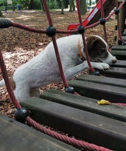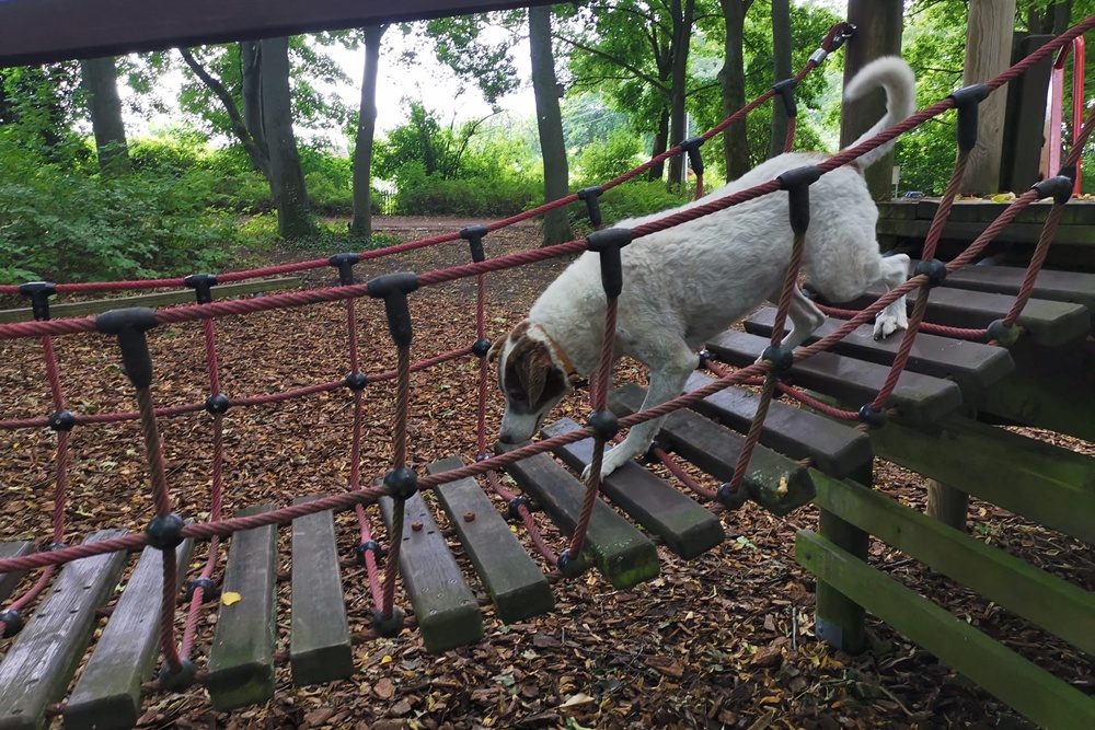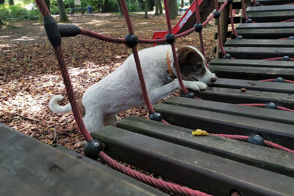 Aber die Liste, was sie alles gelernt hat, ist lang: Sie läuft sehr gut an der Leine und hört auf den Rückruf. Sie geht angemessen mit anderen Hunden um und ist sehr gut sozialisiert. Nur schwarze Hunde mag sie nicht und dann wird an der Leine auch mal gepöbelt. Sie kann mit einem Ersthund einige Stunden alleine bleiben. Und wenn sie Vertrauen zu ihrem Menschen gefasst hat, dann fährt sie auch ohne Probleme Bahn und geht mit zum Einkaufen. Und sie hat ein neues Hobby: Hoopers Agility, gelenkschonend und vielseitig, passt gut zu Martas Temperament. Einzig das Autofahren ist ihr noch suspekt und sie steigt nicht alleine ein.
