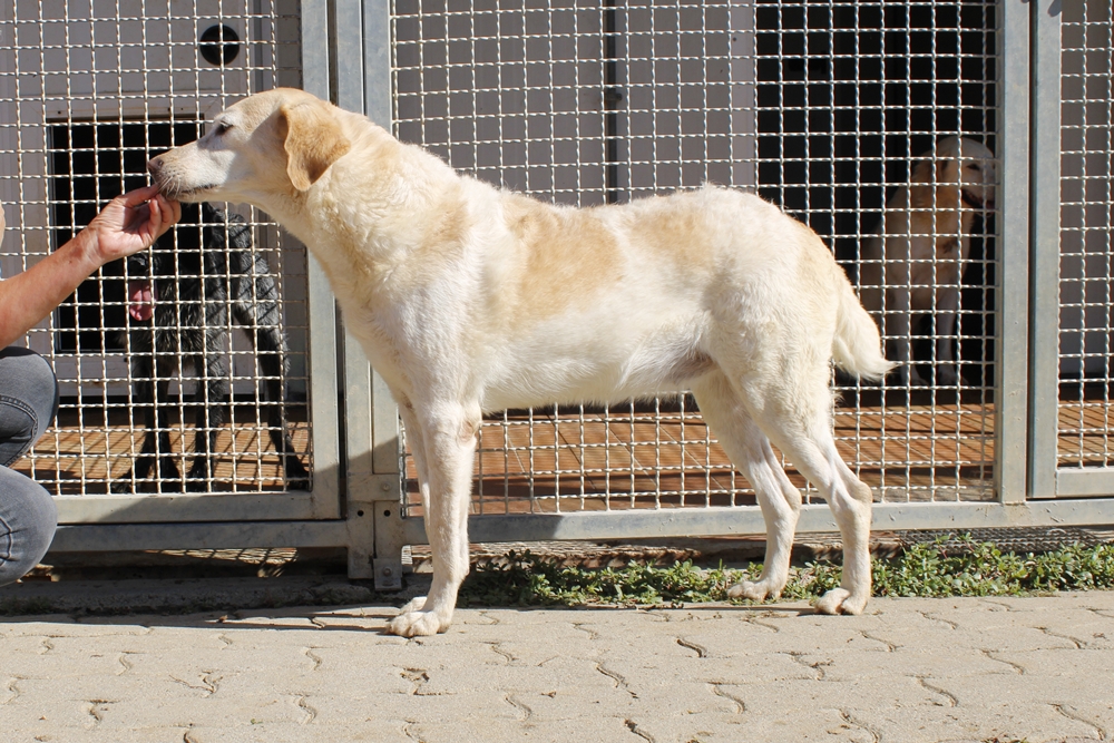 Molly ist eine ruhige, in sich ruhende Maremmano-Mischlingshündin mit sanftem Blick und einem feinen Wesen. Ihre verkürzte Rute beeinträchtigt sie in keiner Weise. Auch bei unserem letzten Besuch zeigte sie sich zurückhaltend, aber nicht ängstlich – vielmehr beobachtend, als wolle sie erst sicher sein, dass man es gut mit ihr meint.