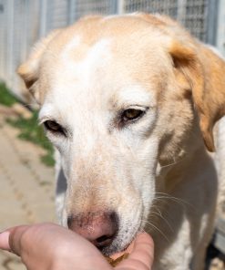Nach kurzer Zeit kam sie dann vorsichtig auf uns zu, nahm Leckerchen entgegen und wedelte verhalten mit dem Schwanz. Ihre vorsichtige Art ist kein Zeichen von Misstrauen, sondern Ausdruck ihrer bedachten Persönlichkeit – ganz typisch für Herdenschutzhunde, die mit Würde und Besonnenheit auf ihre Umwelt reagieren.