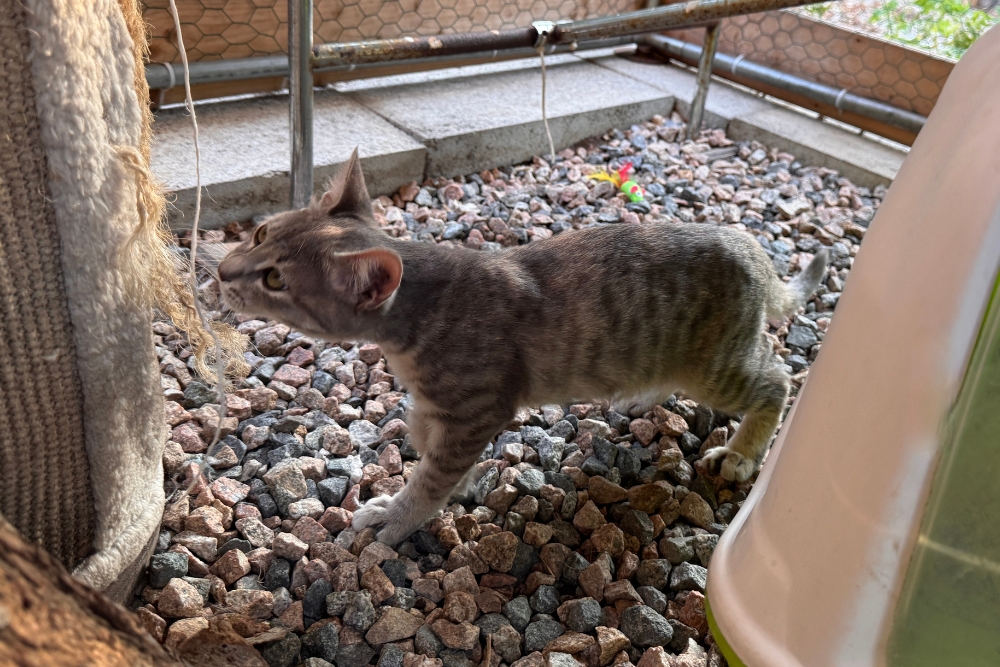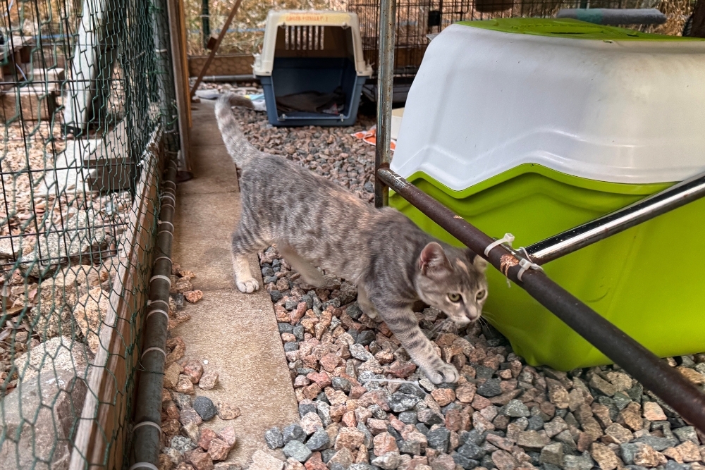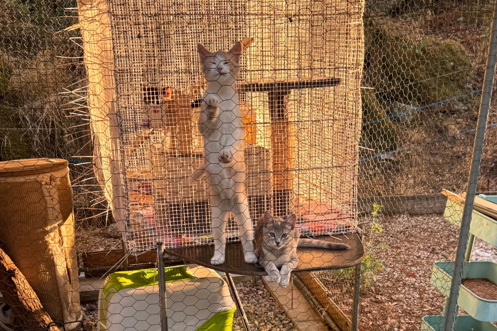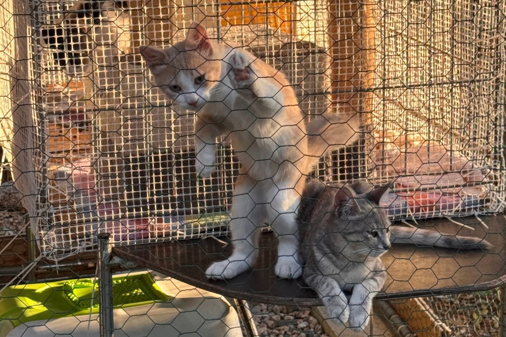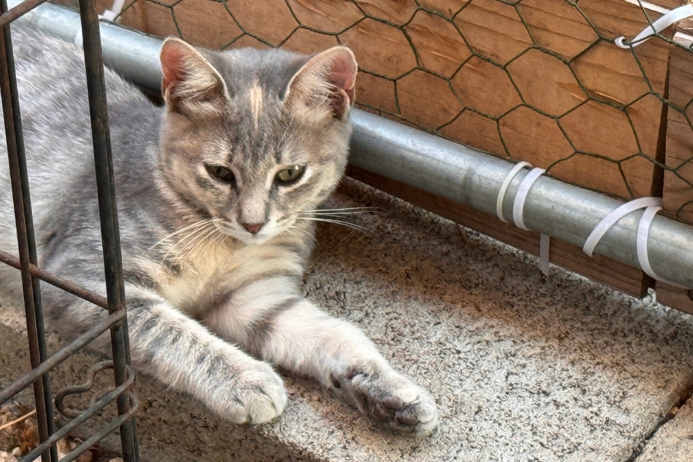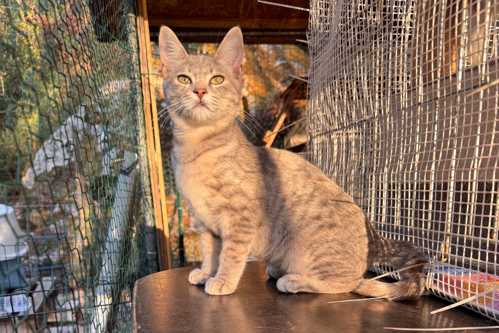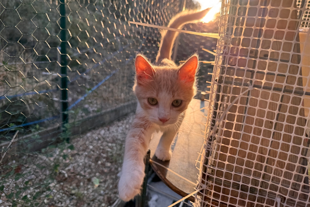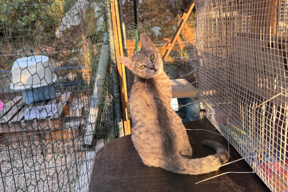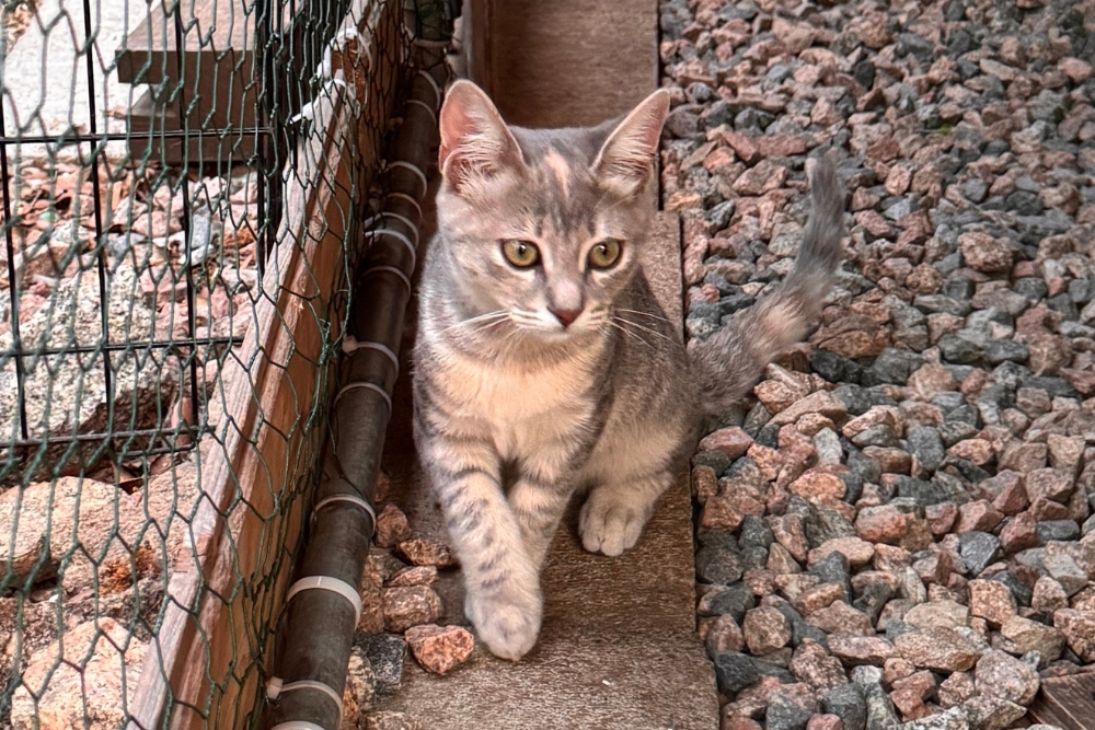 Mitte Juli, bei glühender Hitze, hörte eine tierliebe Einheimische aus Budoni wiederholt leises, klagendes Miauen. Tagelang suchte sie – bis eine erschöpfte Mutterkatze ihre Kitten direkt in ihren Vorgarten legte. Ein stummer Hilferuf. Die ersten drei Kitten waren in einem erbärmlichen Zustand: abgemagert, dehydriert – mit verklebten, entzündeten Augen und unterkühlt – trotz 36 Grad Außentemperatur! Wir haben sofort reagiert. Mutterkatze und ihre drei Babys wurden in die Tierklinik gebracht, stabilisiert und anschließend auf unsere Katzenstation überführt. Doch das verzweifelte Miauen hörte nicht auf… Tatsächlich fanden wir noch zwei weitere Kitten, verborgen im Dickicht. Für eines von ihnen kam jede Hilfe zu spät. Während die Mutter sich erholte, kastriert und wieder freigelassen werden konnte, kämpften die vier übrigen Kitten um ihr Leben. Ein kleines Mädchen kam leider nicht zu Kräften und verstarb trotz all unserer Bemühungen, sie zu retten. Doch die übrigen drei Kitten – Peppy, Tilly und Fanny – haben es geschafft. Sie werden stärker, größer und mutiger und schon bald sind sie bereit für ihre große Reise ins Glück.