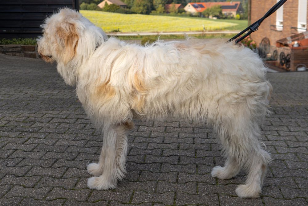 • Körper: Ein rustikaler, kräftiger und großformatiger Hund, dennoch wirkt er nicht schwerfällig, sondern elegant und würdevoll.