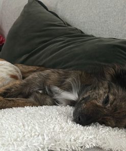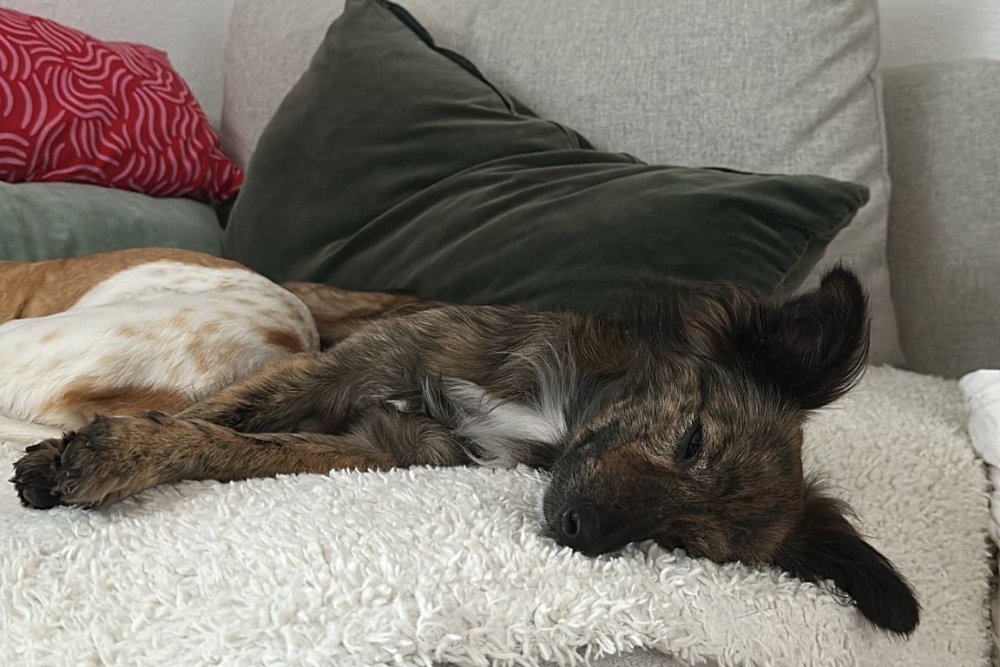 Anfangs zeigte sich Sabina schüchtern und brauchte etwas Zeit, um Vertrauen zu fassen. Doch hat sie dieses gewonnen, zeigt sie sich von ihrer fröhlichen und charmanten Seite. Nach wenigen Tagen im Pflegezuhause bewegt sie sich im Haus völlig entspannt, spielt ausgelassen mit ihrem Spielzeug und flitzt mit Begeisterung durch die Gegend. Am allerliebsten beschäftigt sie sich aber mit ihren Menschen, liebt es zu kuscheln und fordert ihre Streicheleinheiten mit sanftem Stupsen ein. Trotz ihrer Energie kommt Sabina schnell zur Ruhe und genießt ruhige Momente voller Nähe und Geborgenheit.