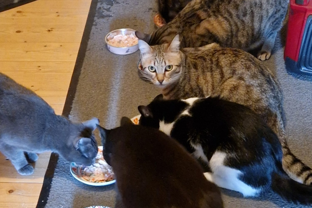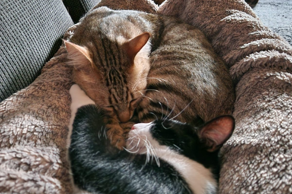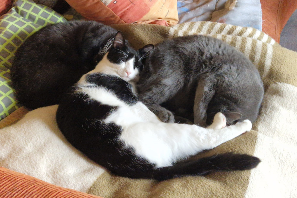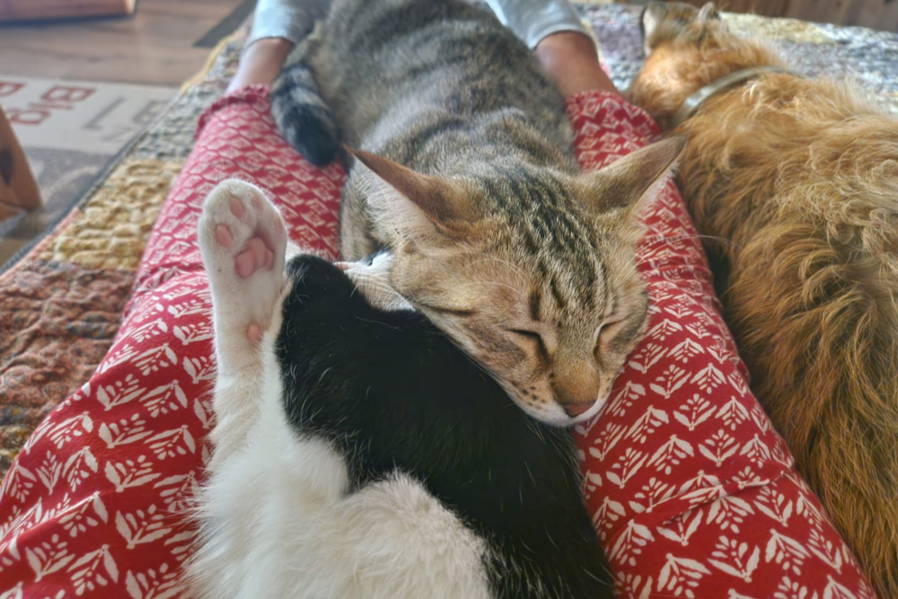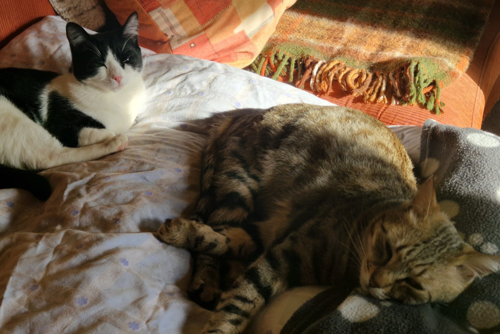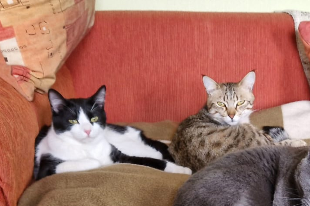 Silvestro und Tigro leben gemeinsam mit Hunden und anderen Katzen auf einer Pflegestelle in Barntrup.