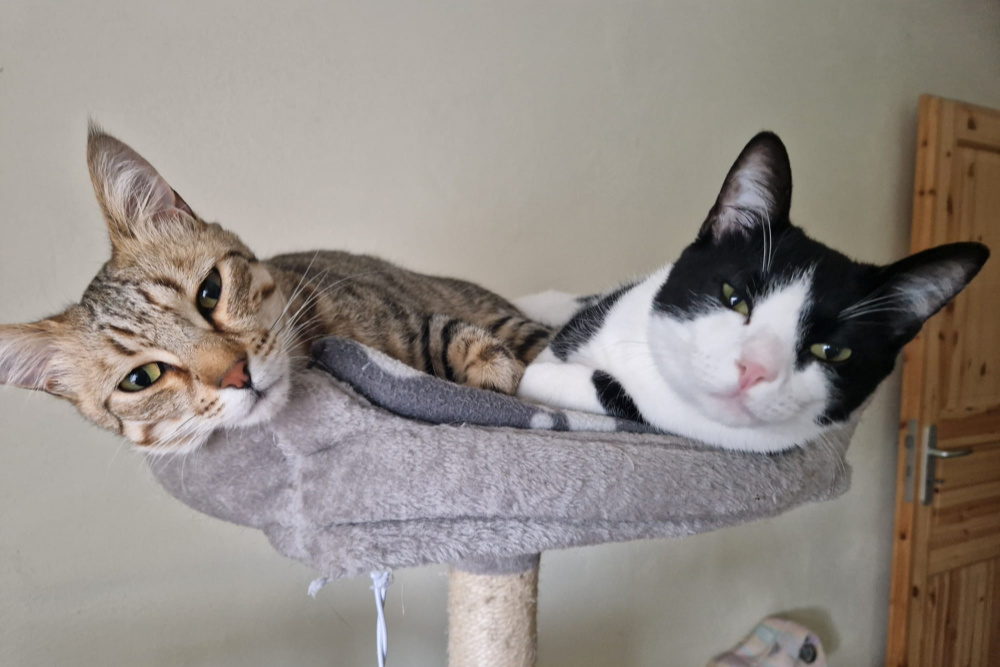 Silvestro und Tigro sind absolut unkomplizierte Zeitgenossen. Sie würden gut in ein größeres Rudel aus Katzen und Hunden passen, können aber auch als alleinige Herrscher in ihr gemeinsames Zuhause ziehen. Einzige Bedingung: Beide Kater sind unzertrennlich und suchen daher gemeinsam ein Zuhause.