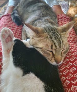 Die beiden Jungs sind verspielt und verschmust. Sie sind sehr sozial und kommen mit den anderen Katzen und Hunden der Pflegestelle hervorragend zurecht und schmusen gerne in großen Gruppen. Menschen gegenüber sind sie lieb, verschmust und anhänglich. Vor allem der Bengale-Mischling Tigro ist besonders menschenbezogen, aber auch für Silvestro sind seine Menschen sehr wichtig. Die beiden kennen auch Kinder.