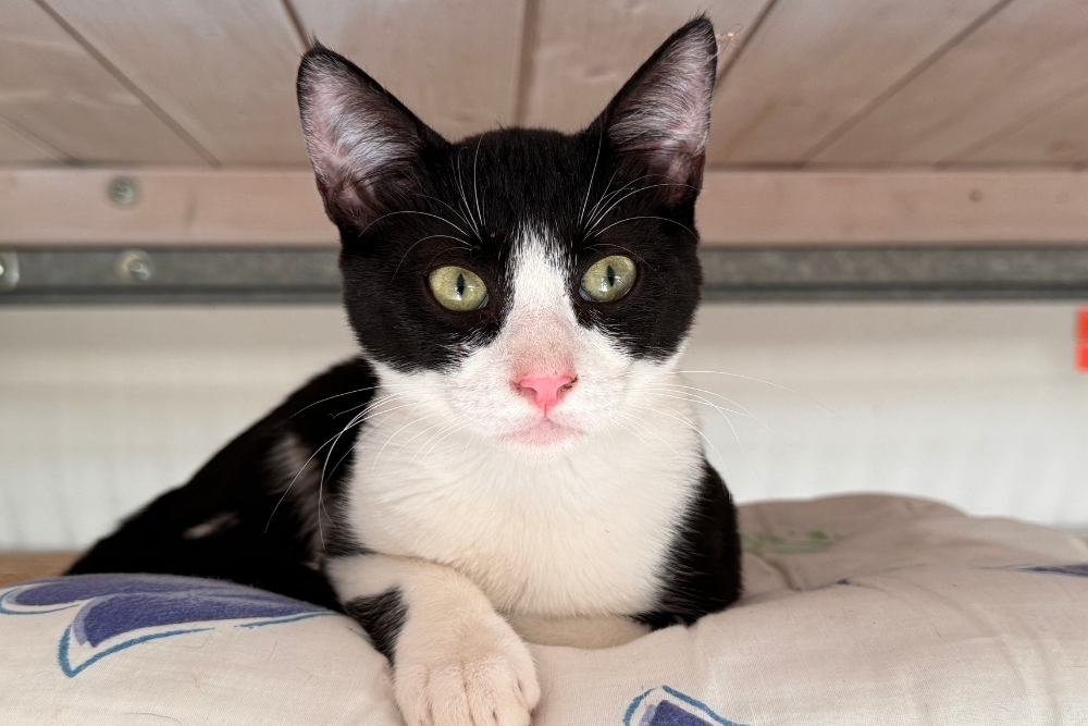 Sein schwarz-weißes Fell verleiht Rocky etwas Elegantes – fast so, als würde er einen Anzug tragen. Das macht ihn ganz besonders charmant. Er sucht die Nähe zu Menschen und ist verschmust und anhänglich. Er ist clever und weiß, wie er seine Menschen zum Lachen bringen kann. Mit ihm wird es garantiert nie langweilig!