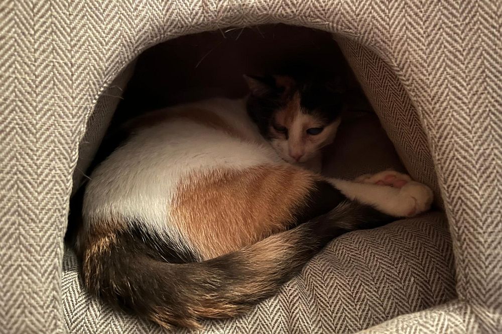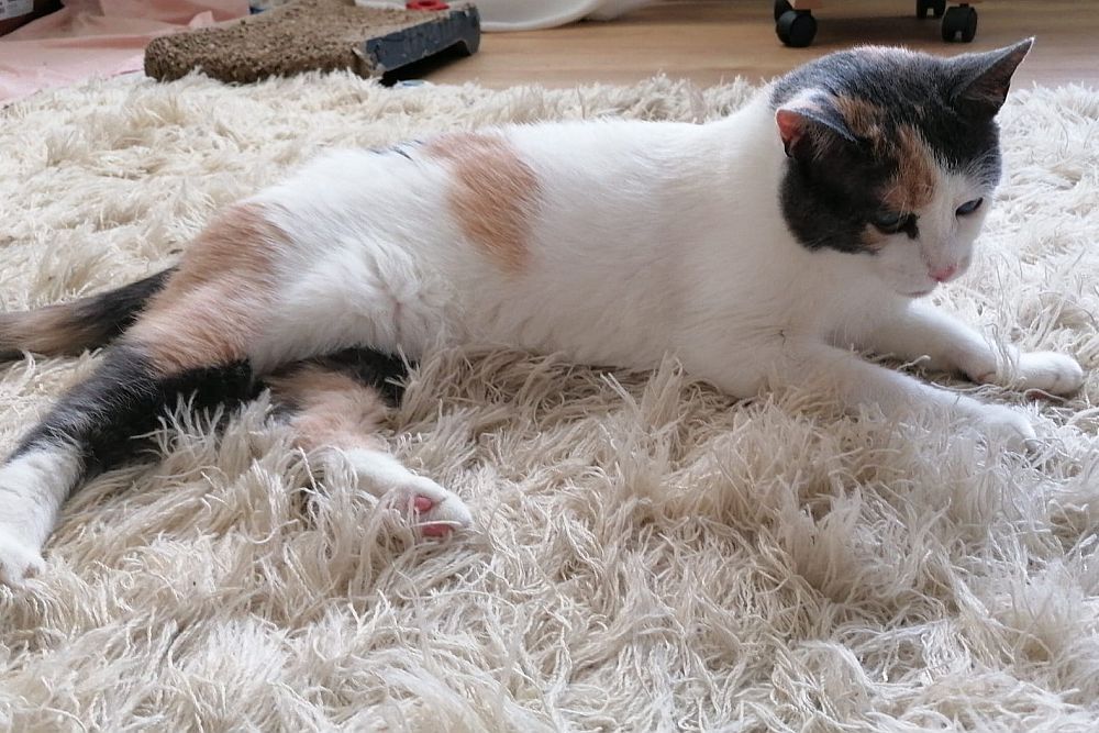 Alles Wichtige, wie z. B. das Futter und die Katzentoilette, muss an derselben Stelle stehen. Die Katzentoilette benutzt sie zuverlässig, sie ist also trotz ihrer Behinderung stubenrein.