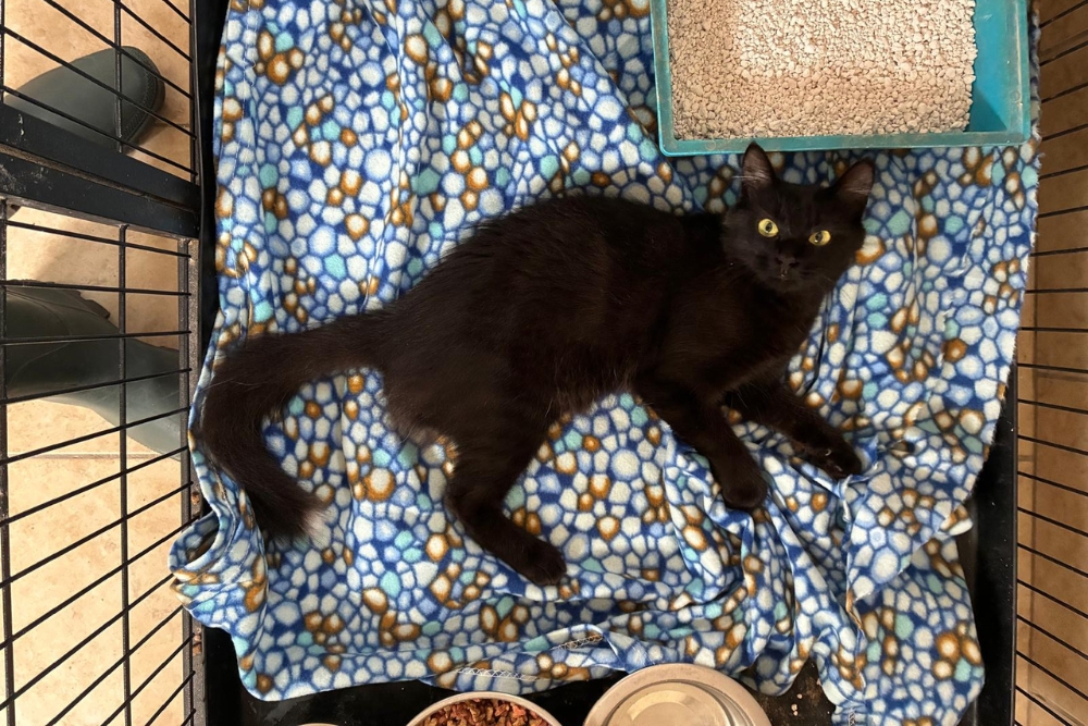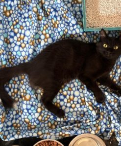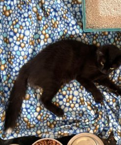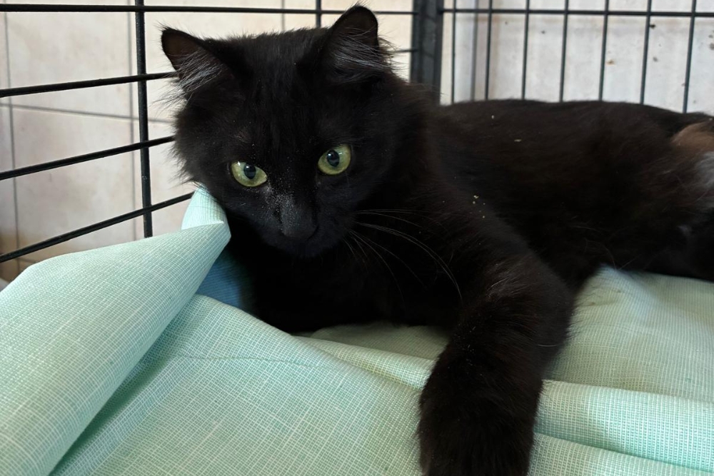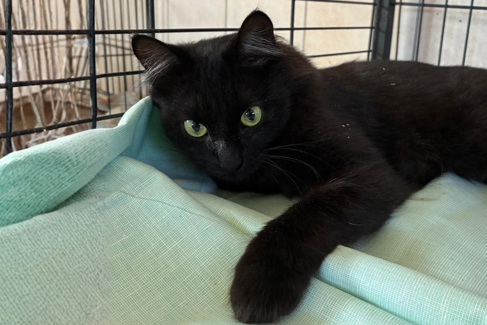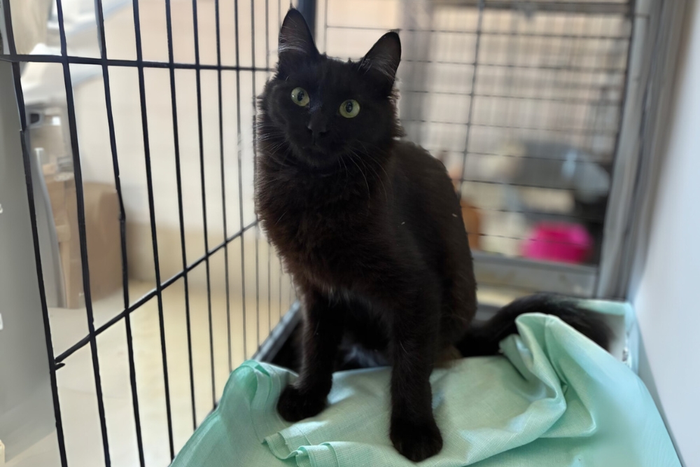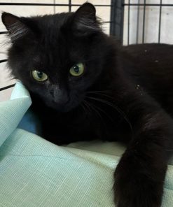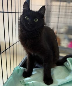 Trippi ist eine wunderschöne schwarze Halblanghaarkatze mit auffälligen weißen Abzeichen: ein kleiner Fleck auf der Brust, einer auf dem Bauch und ein zarter weißer Punkt an der Schwanzspitze. Ihre strahlend grünen Augen verleihen ihr einen besonders ausdrucksstarken Blick. Auffällig ist auch ihr Handicap, denn ihr linkes Hinterbein fehlt, was sie jedoch nicht davon abhält, ihr fröhliches und aufgeschlossenes Wesen zu zeigen.
