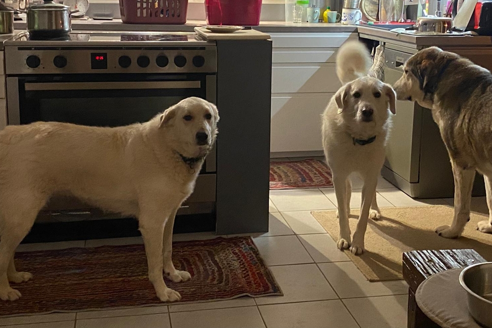 Nach dem bisher Gesagten, versteht es sich wohl selbst, dass diese Hunde weder Ketten vertragen, noch in einem Zwinger gehören. Beides bedeutet eine unverhältnismäßige Beschränkung ihrer natürlichen Verhaltensweise. Ihr Fell ist zwar weiß und lang und dicht, bedarf aber keiner großen Pflege. Einmal wöchentliches Kämmen genügt, um Verfilzungen zu vermeiden. Nach Ausflügen im Herbst kommen die Hunde manchmal eher braun als weiß nach Hause – aber keine Aufregung: Sobald der Hund wieder getrocknet ist, fällt fast aller Schmutz von allein ab. Den Rest kann man leicht auskämmen. Diese schutzabweisende Eigenschaft des Fells schadet man durch Shampoo nur, weshalb Baden nicht zu empfehlen ist. “Wir lassen unsere Hunde den ganzen Tag frei auf einer Fläche von mehr als einem Hektar laufen!” Man kann immer wieder beobachten dass die Hunde am liebsten auch noch das benachbarte Ackerland mit in Besitz nehmen würden. Sie haben hier die Aufgabe auf das Haus und das Grundstück zu achten.